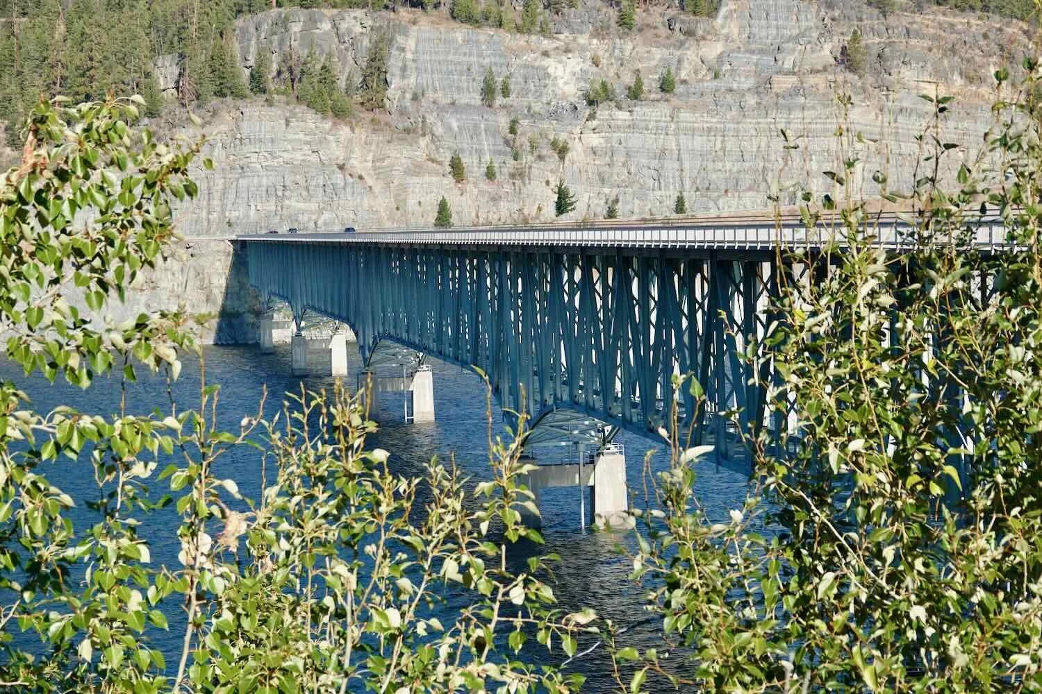 The Lake Koocanusa Bridge, as seen from a rest stop on the east side of the lake. In 2021 we crossed that bridge and headed into the Purcell Mountains on the WWR. Montana, USA. Copyright © 2019-2022 Pedals and Puffins.