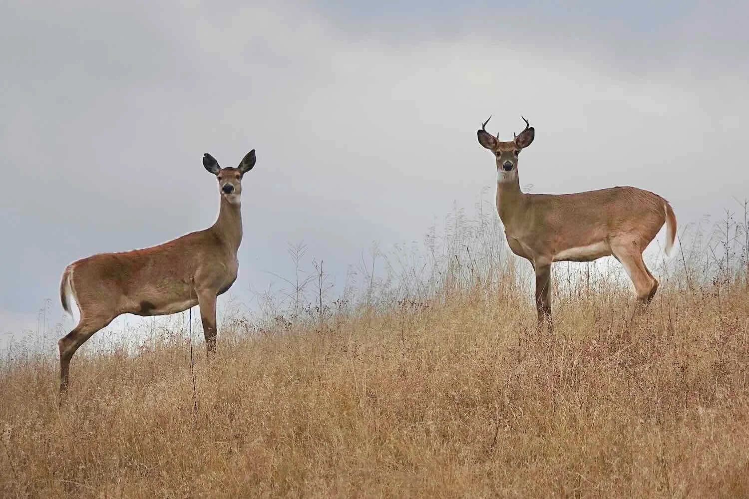 Two white-tailed deer kept an eye on us from a hilltop. Eureka, Montana, USA. Copyright © 2019-2022 Pedals and Puffins.