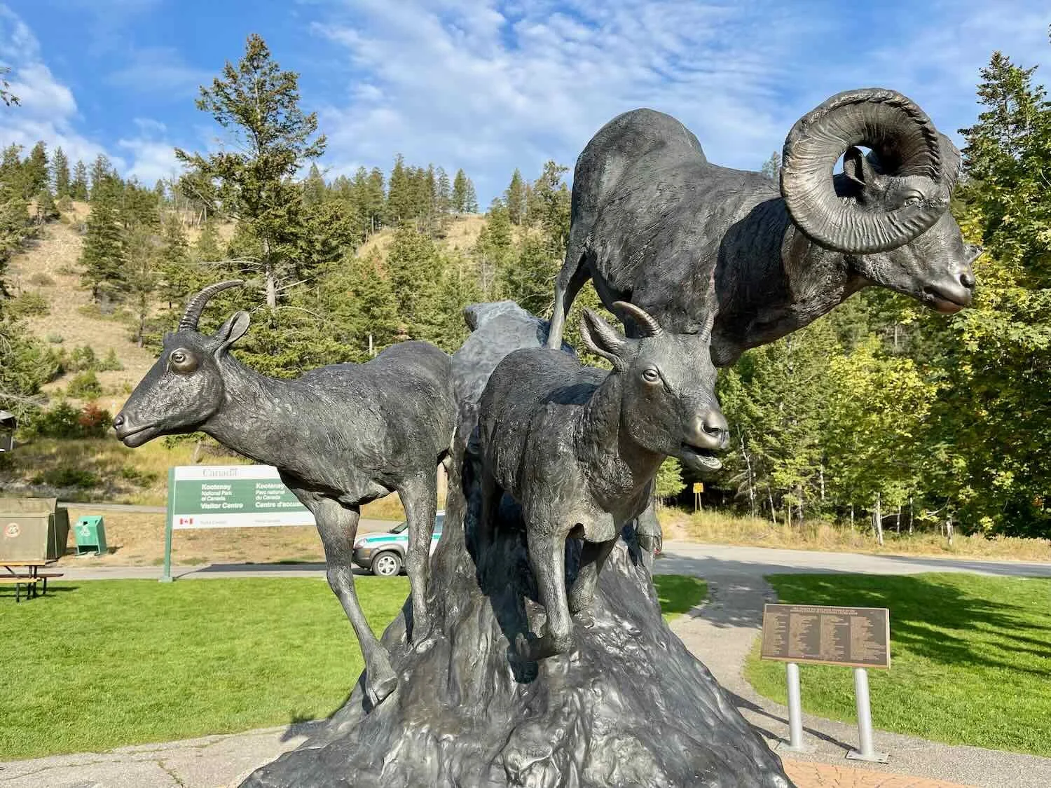 Radium Hot Springs has made bighorn sheep a major element of the town’s identity. Images of, and references to, bighorn sheep are everywhere - including this statue outside the town’s visitor center. Radium Hot Springs, British Columbia, Canada. Copyright © 2019-2022 Pedals and Puffins.