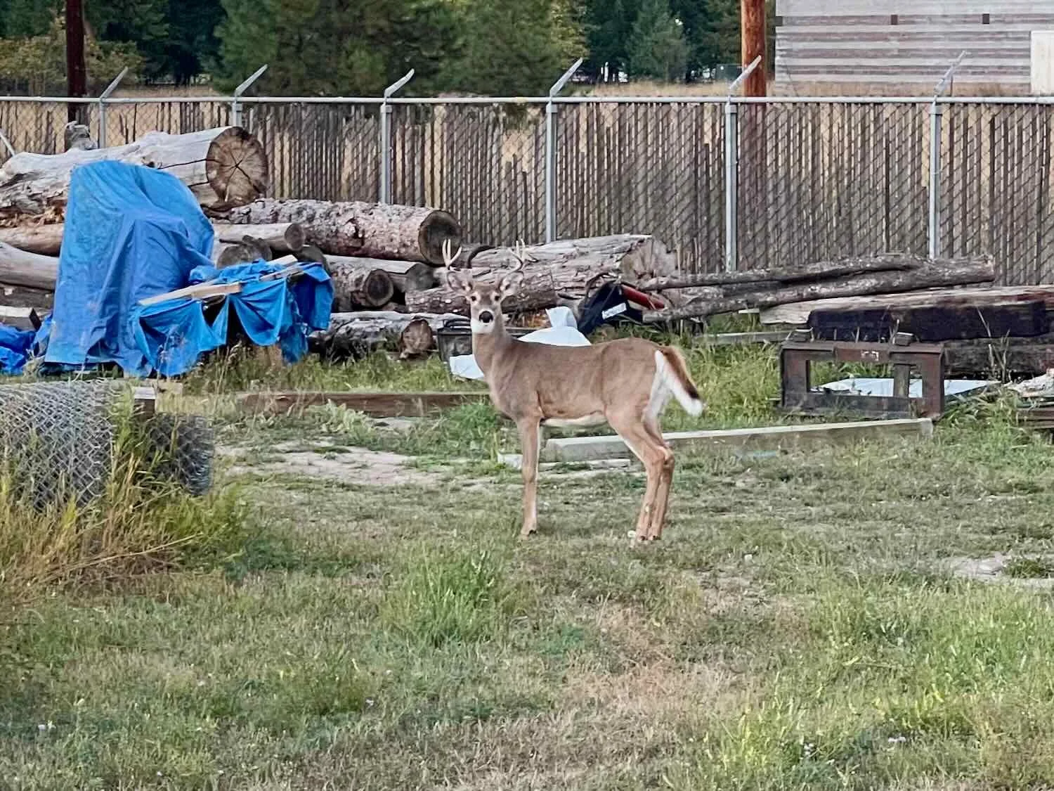 We spotted this handsome white-tailed deer buck in an industrial yard. Libby, Montana, USA. Copyright © 2019-2022 Pedals and Puffins.