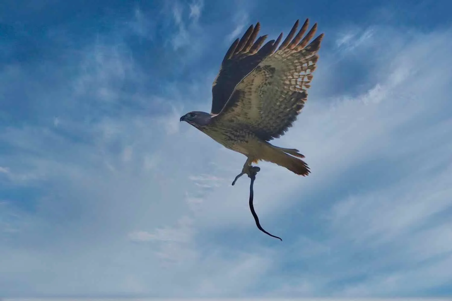 We witnessed some of the drama of nature when this red-tailed hawk caught a snake by the side of the road and carried it away. Clark Fork River Valley, Montana, USA. Copyright © 2019-2022 Pedals and Puffins.