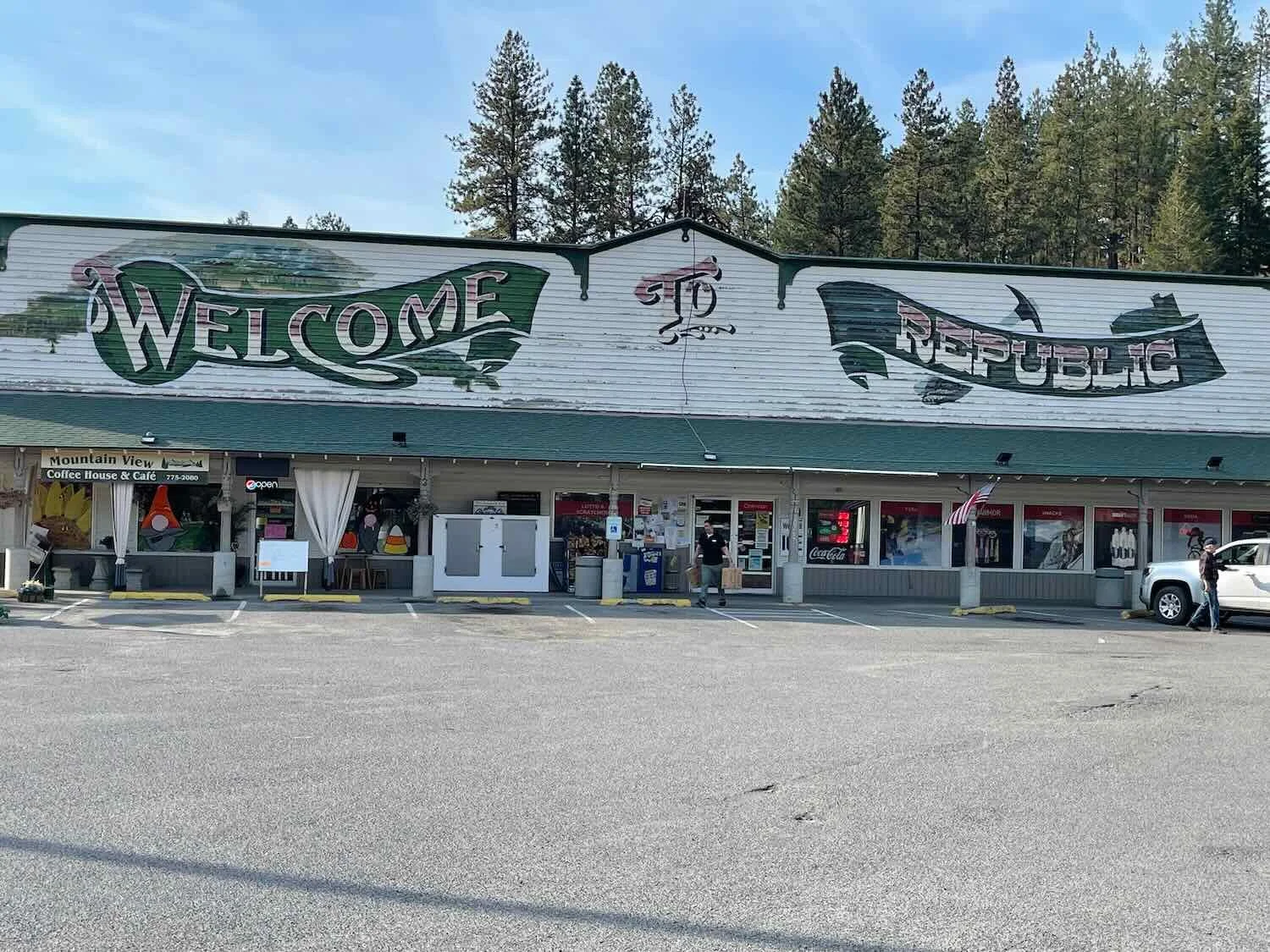 We were delighted to see the “Welcome to Republic” sign as we passed a store on the way into town. Republic, Washington, USA. Copyright © 2019-2022 Pedals and Puffins.