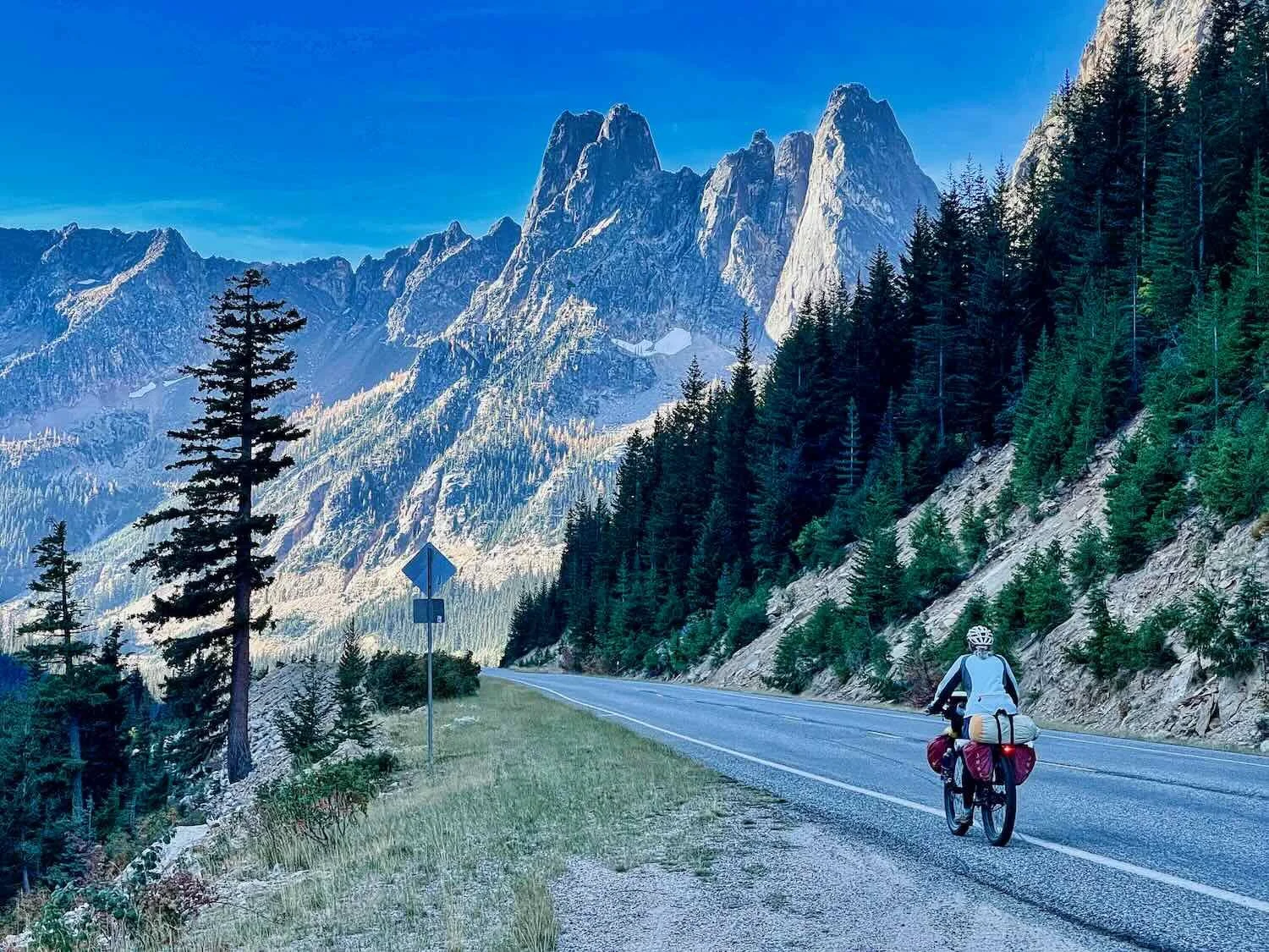 Ascending towards the Early Winters Spires on the North Cascades Scenic Highway. Okanogan National Forest, Washington, USA. Copyright © 2019-2022 Pedals and Puffins.
