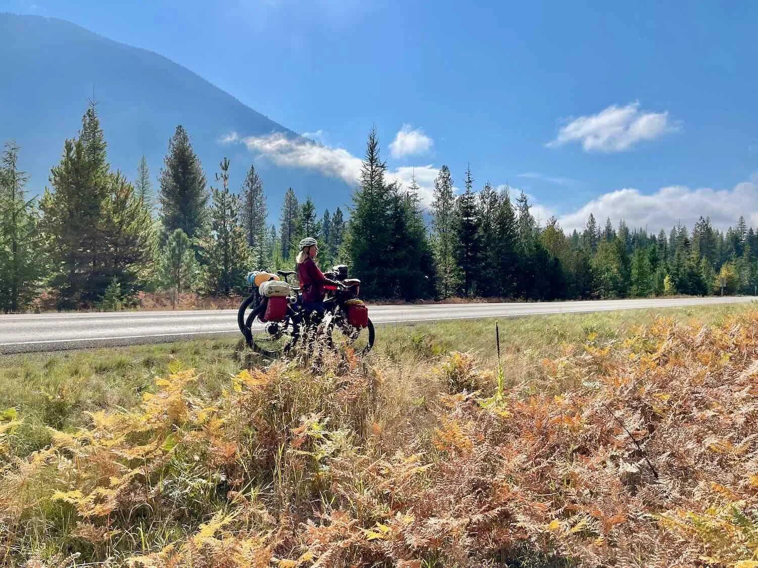 Bracken fern, turning yellow with the changing season, formed dense thickets along our route. Montana, USA. Copyright © 2019-2022 Pedals and Puffins.