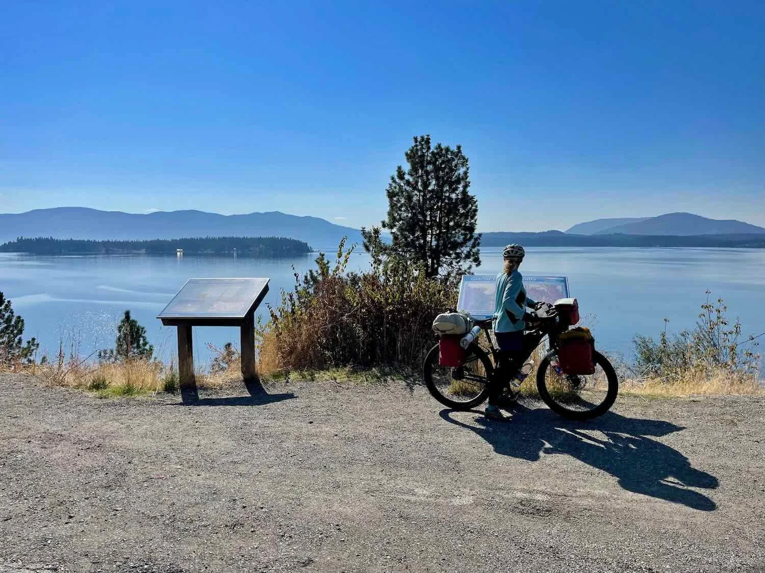 Information signs along the shore of Lake Pend Oreille gave us a chance to take a break from the busy highway, and enjoy the scenery. Lake Pend Oreille. Idaho, USA. Copyright © 2019-2022 Pedals and Puffins.