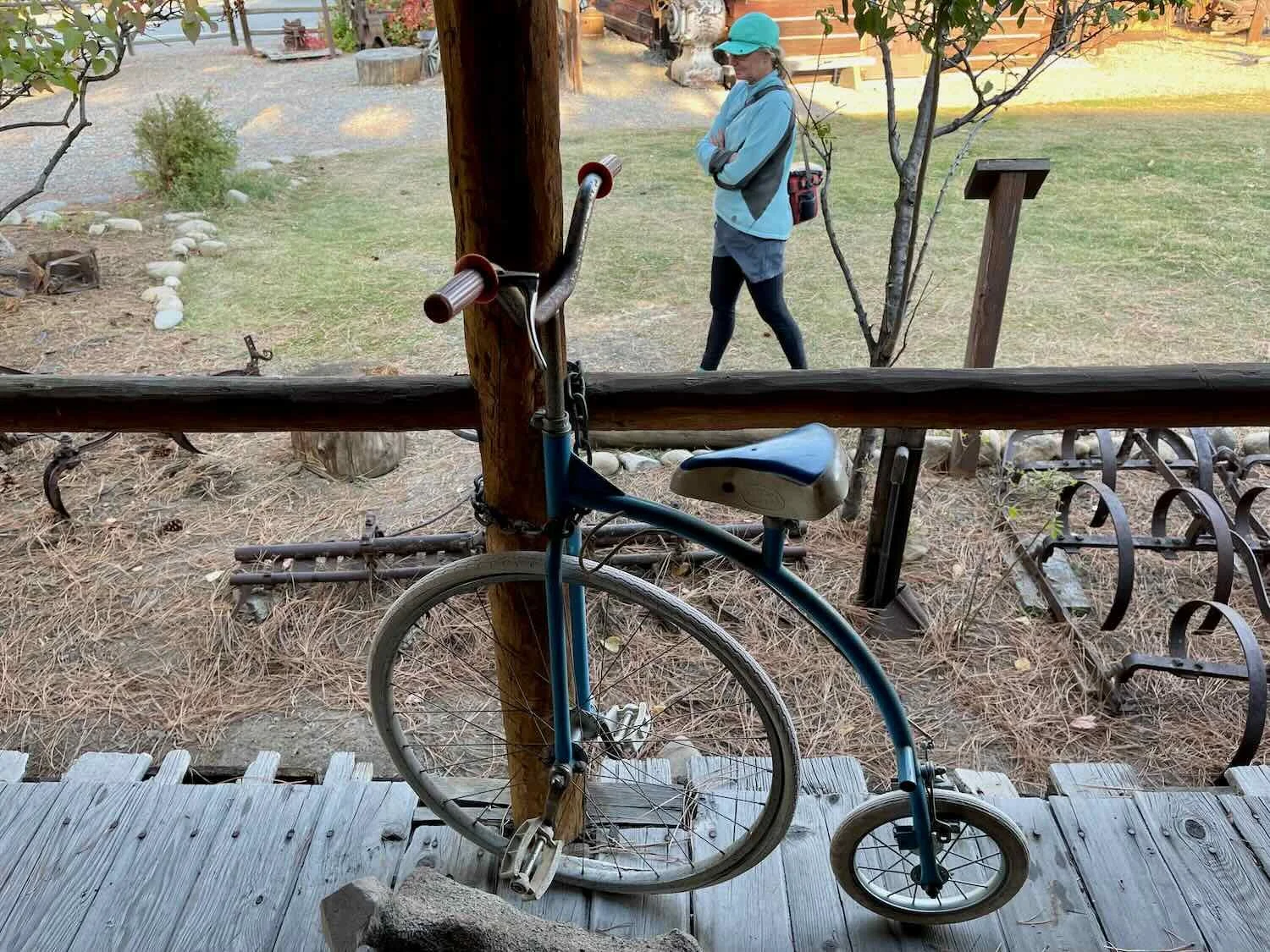A child-sized high-wheel bicycle at the local history museum. Winthrop, Washington, USA. Copyright © 2019-2022 Pedals and Puffins.
