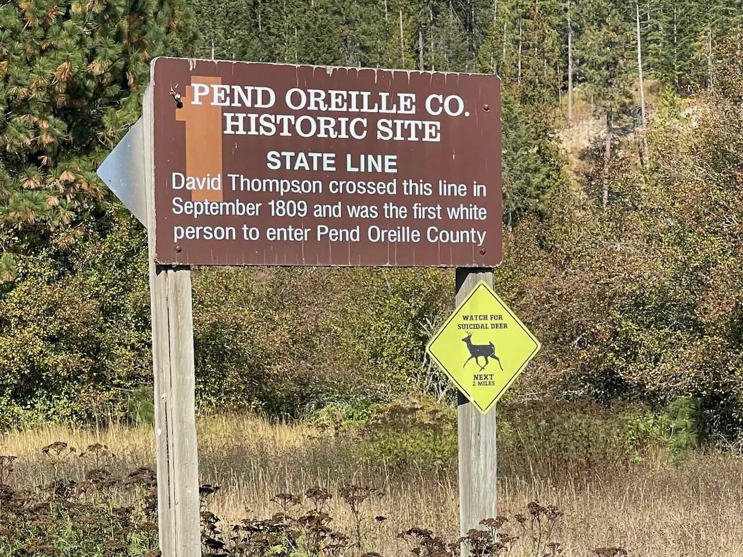 It’s not the big, brown sign that caught our eye. The smaller, yellow sign seemed to have a much more important message. Washington-Idaho State Line, USA. Copyright © 2019-2022 Pedals and Puffins.