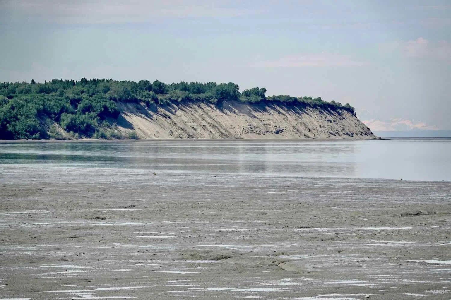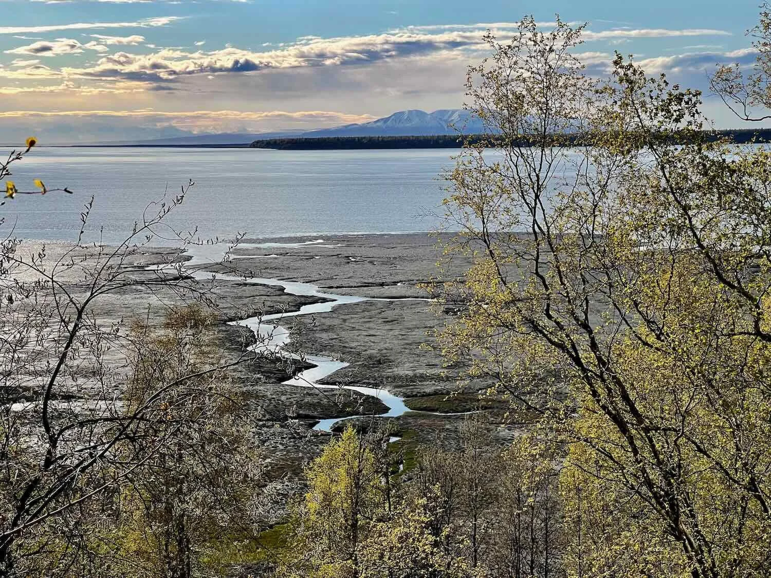 Just south of Anchorage, the sandy bluffs of Point Woronzof rise out of the sea. The Coastal Trail cycling path climbs to the top of the bluff, which sits at one end of the main runway at Anchorage’s international airport. Alaska, USA. Copyright © 2019-2022 Pedals and Puffins.