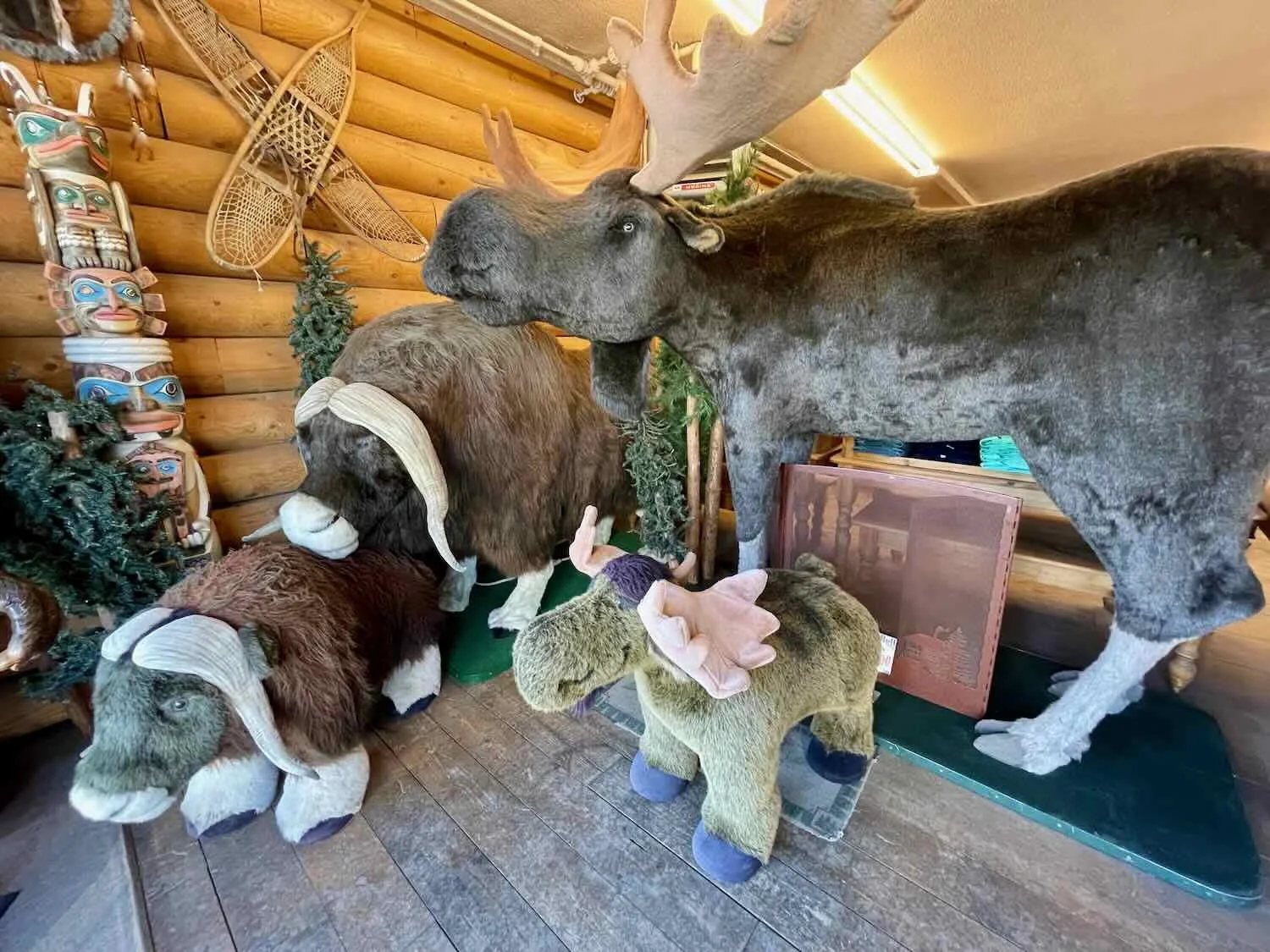 One Anchorage storefront was populated by a herd of moose and muskox - not your typical stuffed animals. Alaska, USA. Copyright © 2019-2022 Pedals and Puffins.