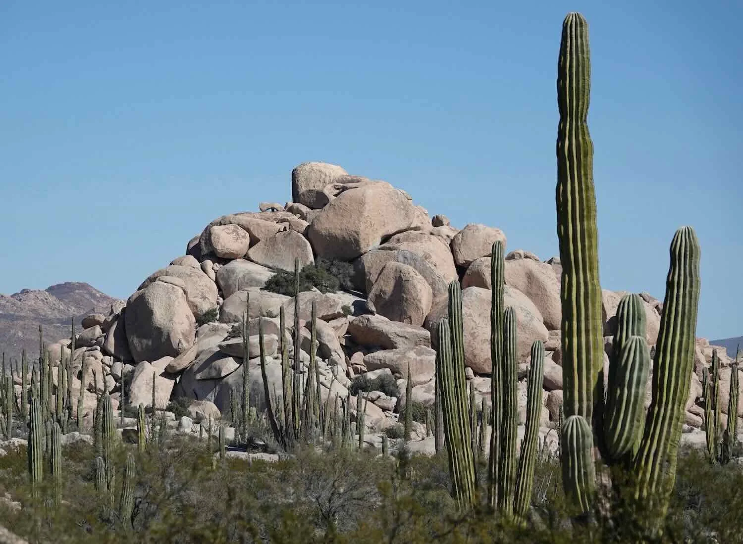 Perhaps the most recognizable cactus of the Baja desert is the cardón cactus (a.k.a., the elephant cactus, a Baja endemic). And we were delighted to finally encounter these massive trees. They are reminiscent of the famous saguaro cactus that grows in the American southwest, but they are much bigger in almost every way. They can grow as high as a six story building (20 ft taller than a saguaro), live 300 years (100 more than a saguaro), and weigh up to 25 tons (more than twice as much as the heaviest elephant on record). That’s really big.