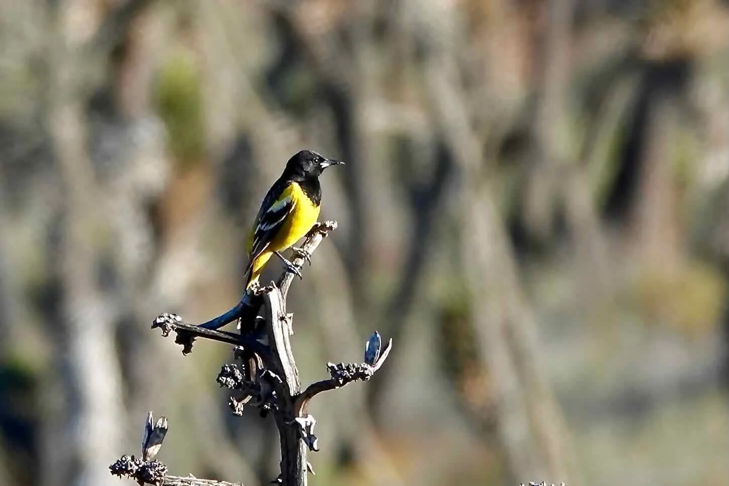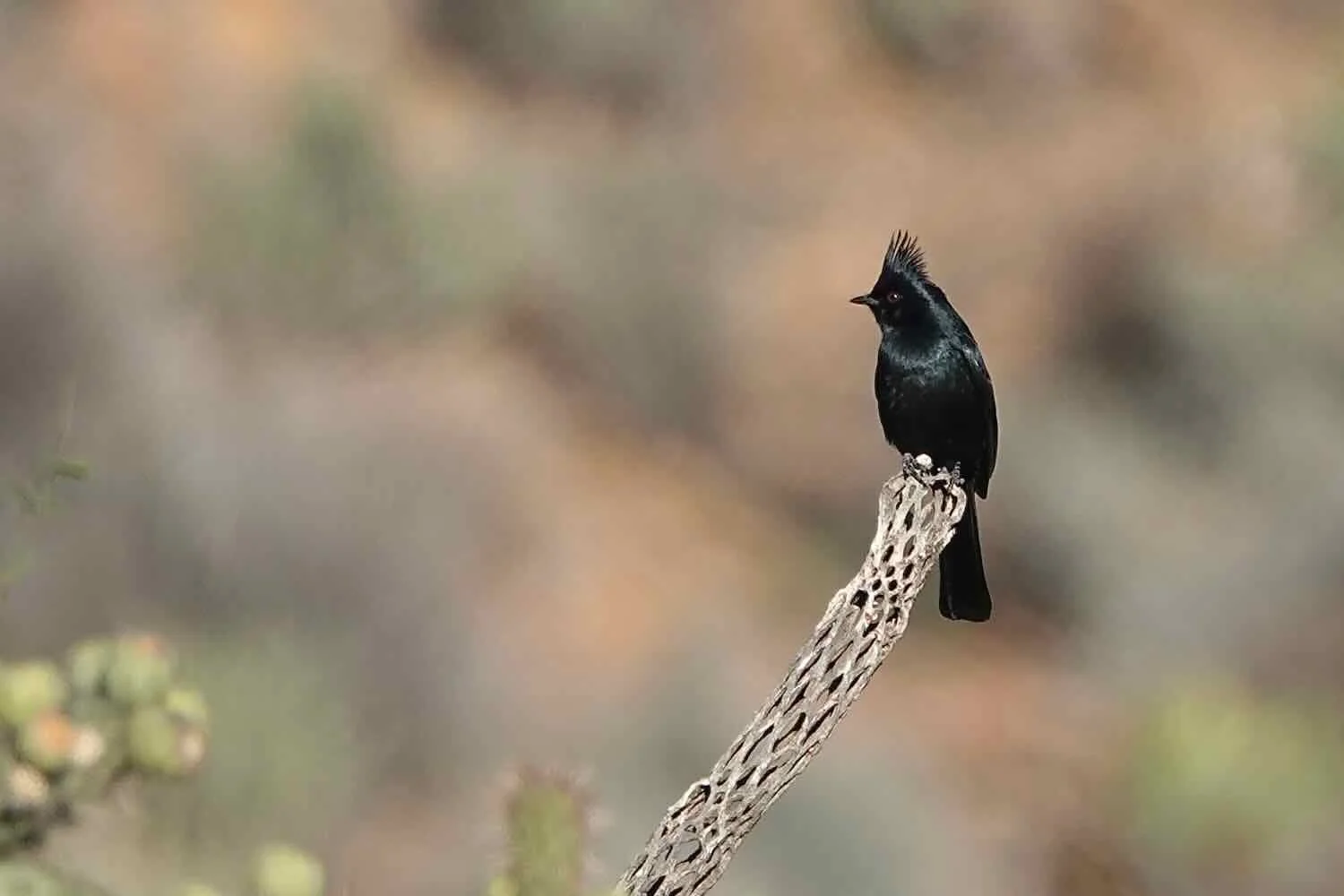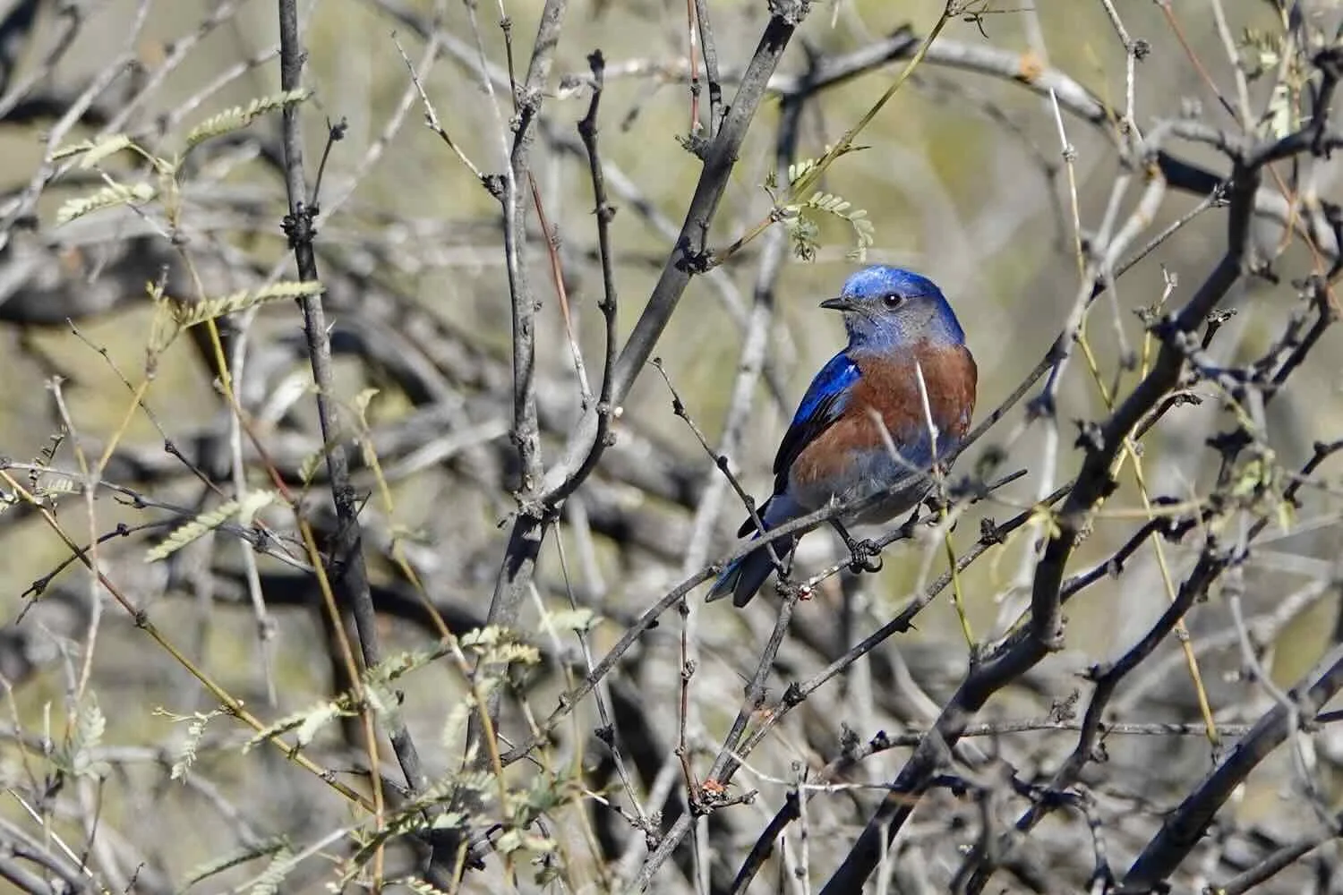 We had a big day planned, so we shoved off early the next morning. After a quick breakfast of muffins and cookies at a highway convenience store, we turned back onto the dirt and headed into the Cerro de San Miguel mountains. Right at the edge of town, we were treated to the sight of one of the most brilliantly-colored birds in the Americas. A diminutive vermillion flycatcher was chasing insects from his perch on a low bush.