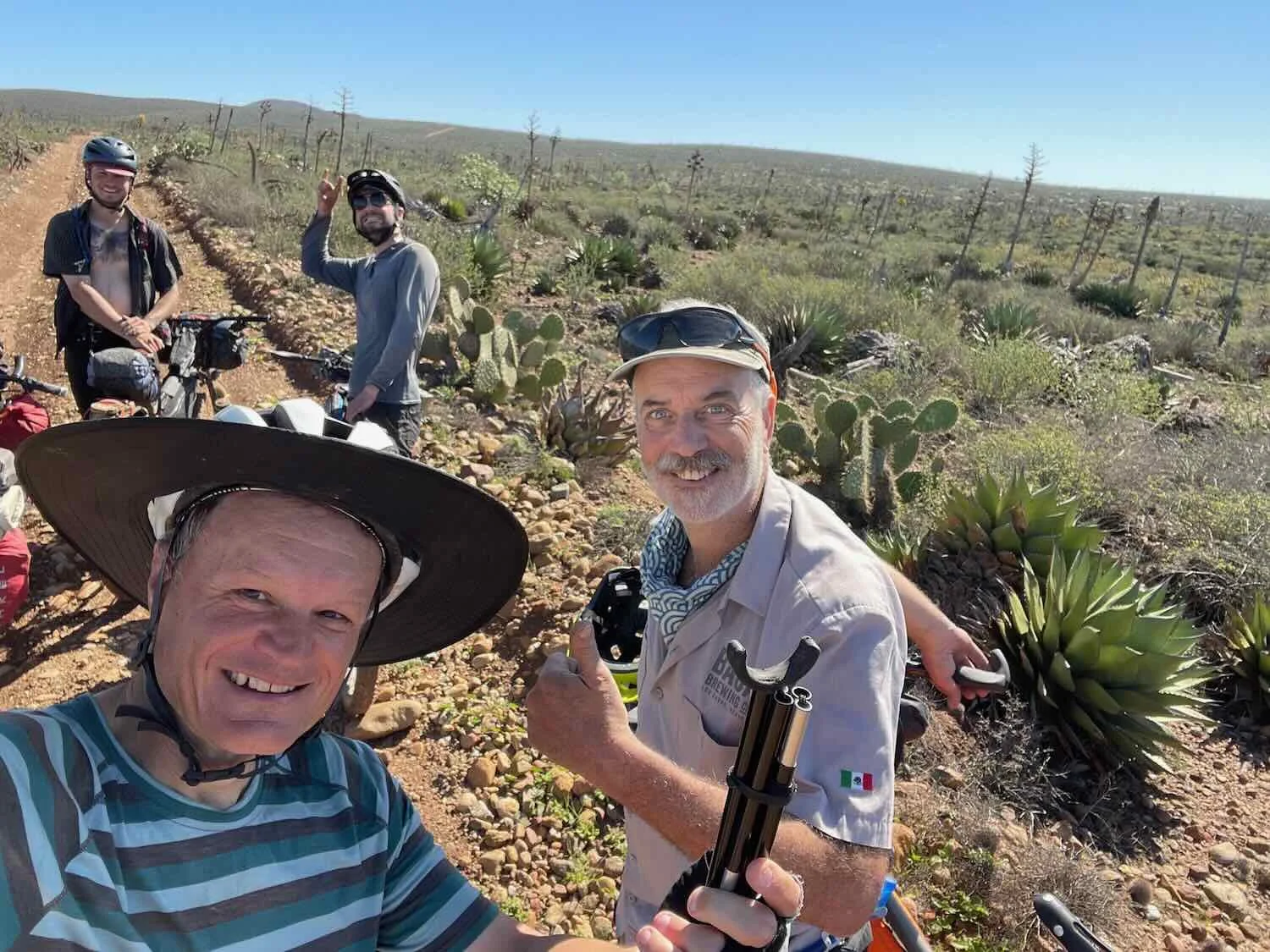 PedalingGuy is thrilled to be reunited with his click-stand, thanks to Adam’s sharp eye (Connor and Carson in the background). Cerro de San Miguel, Baja California, Mexico. Copyright © 2019-2023 Pedals and Puffins.