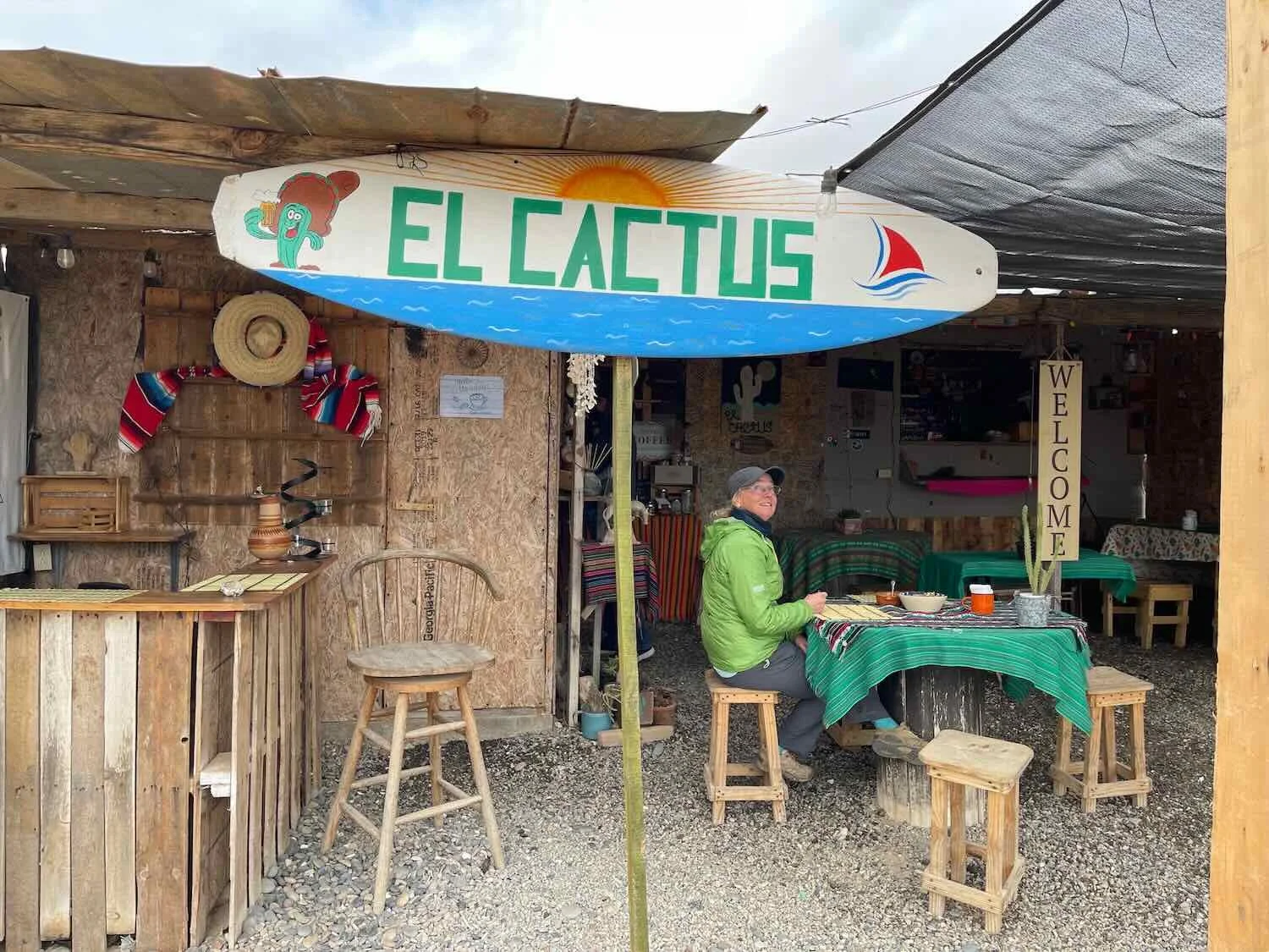 Enjoying an early dinner at El Cactus Restaurant. Santa Rosaliíta, Baja California, Mexico. Copyright © 2019-2023 Pedals and Puffins.