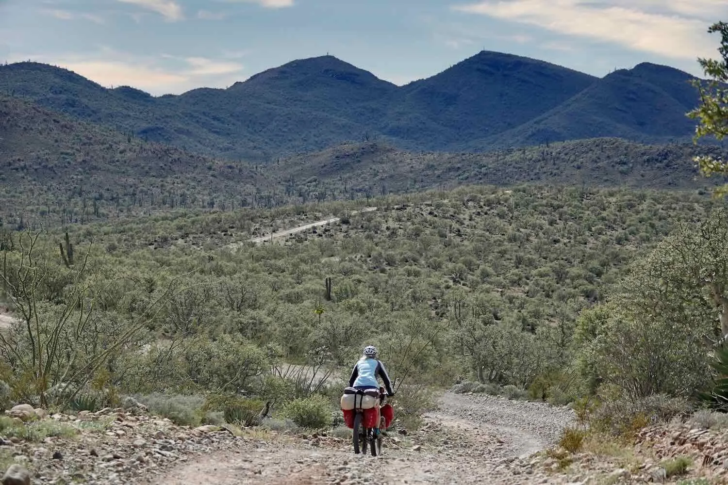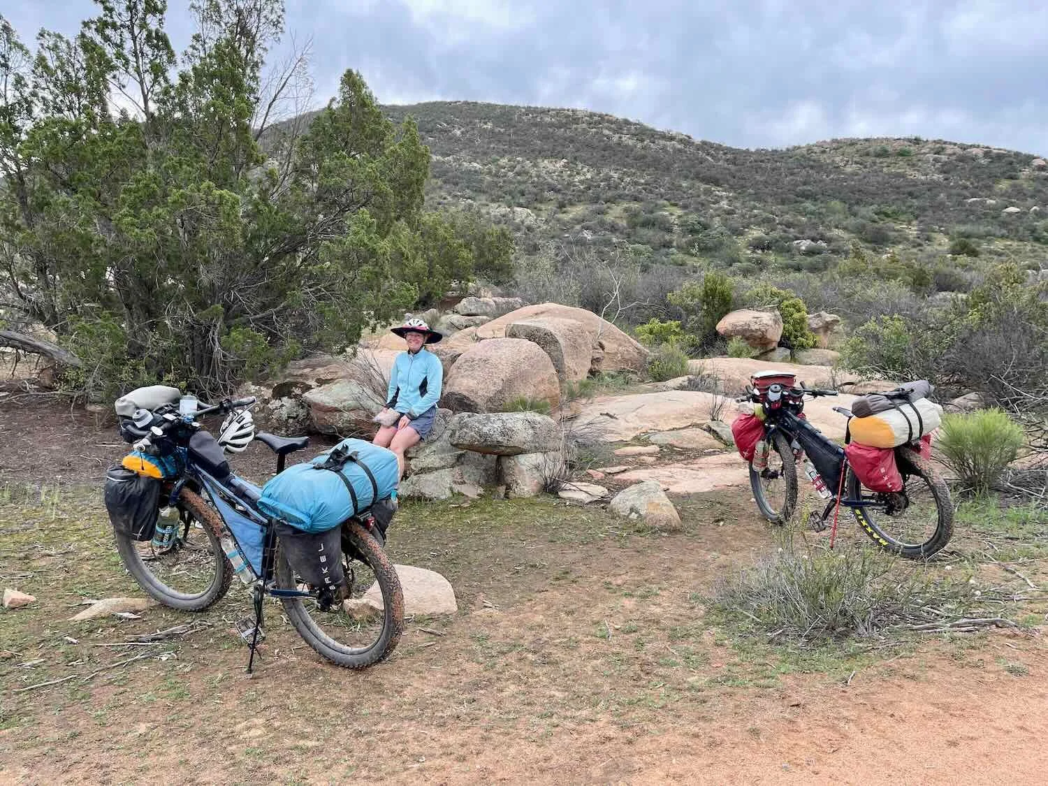 Even so, the Baja Divide would continue to test us both physically and mentally. It took us 5.5 hours to cover the first 11 miles, as the route continued to roller-coaster up and down over steep and rugged terrain. The road surface was strewn with rocks and/or slippery, fine-grained gravel. The weight of the extra water didn’t help. We both struggled, but it was particularly challenging for PedalingGal, who had trouble getting enough traction on her shoes to push her bike up the hills. PedalingGuy was incredibly supportive, helping to push her bike up the worst hills. She would not have been able to complete this section of the route, otherwise.