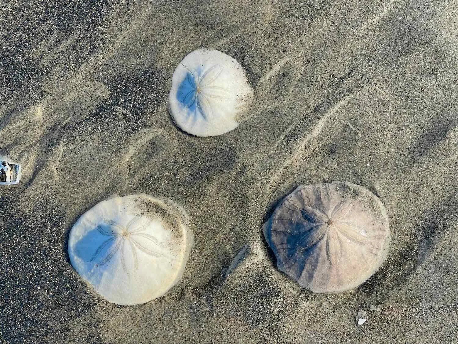 Three of the many sand dollars we saw along the beach. Playa Santa María, Baja California, Mexico. Copyright © 2019-2023 Pedals and Puffins.