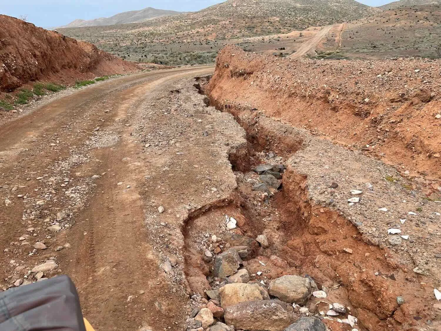 Rain had carved big ruts in some of the hillier sections of the road. North of Santa Rosaliíta, Baja California, Mexico. Copyright © 2019-2023 Pedals and Puffins.