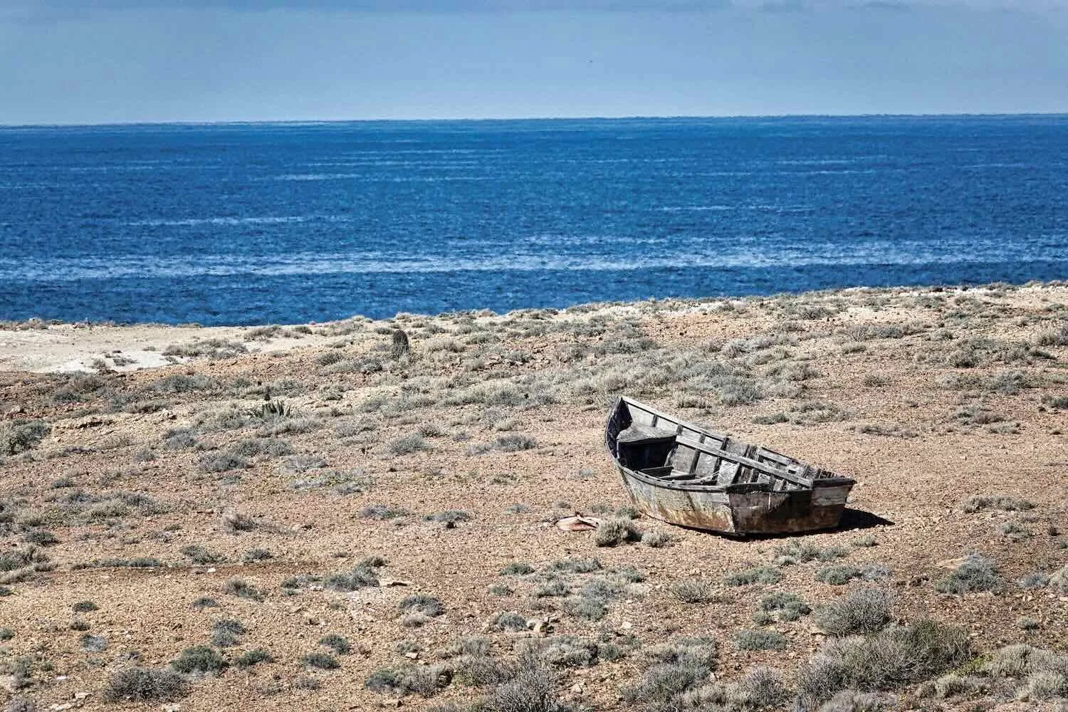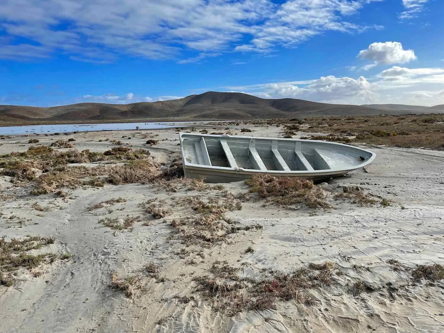 This forlorn panga was marooned on the sand near the lagoon. Bahía Blanco, Baja California, Mexico. Copyright © 2019-2023 Pedals and Puffins.