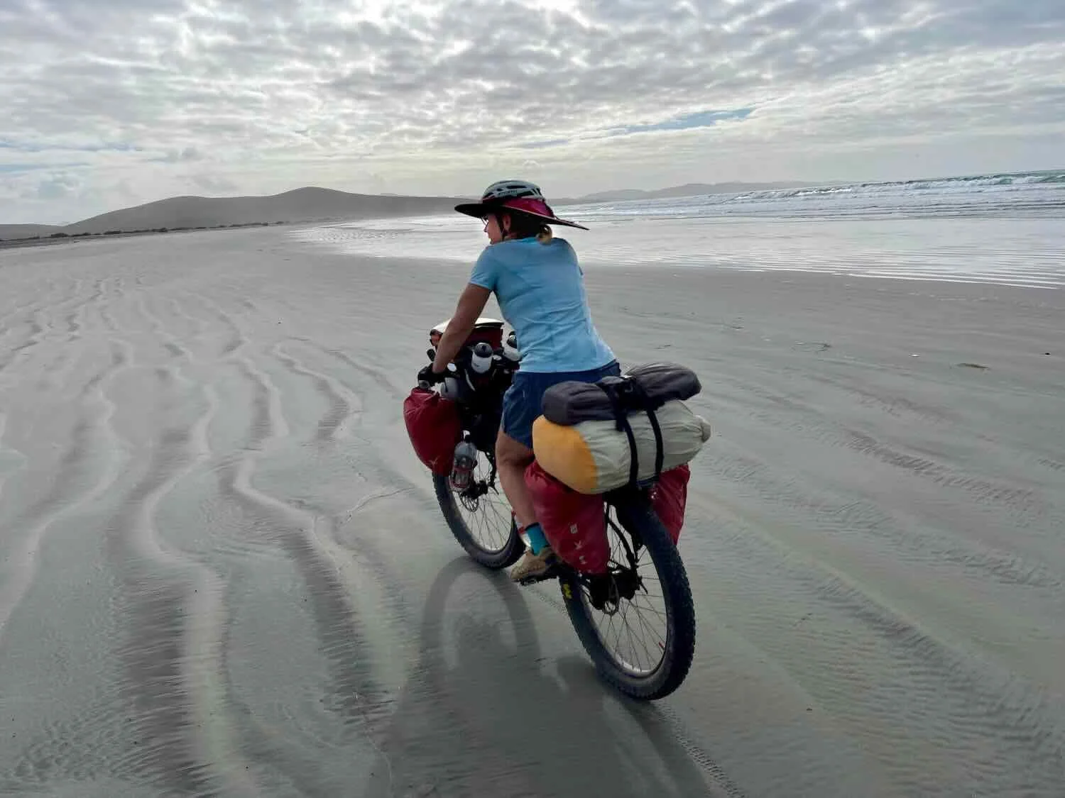 Cycling on the sand at Playa Santa María. Baja California, Mexico. Copyright © 2019-2023 Pedals and Puffins.