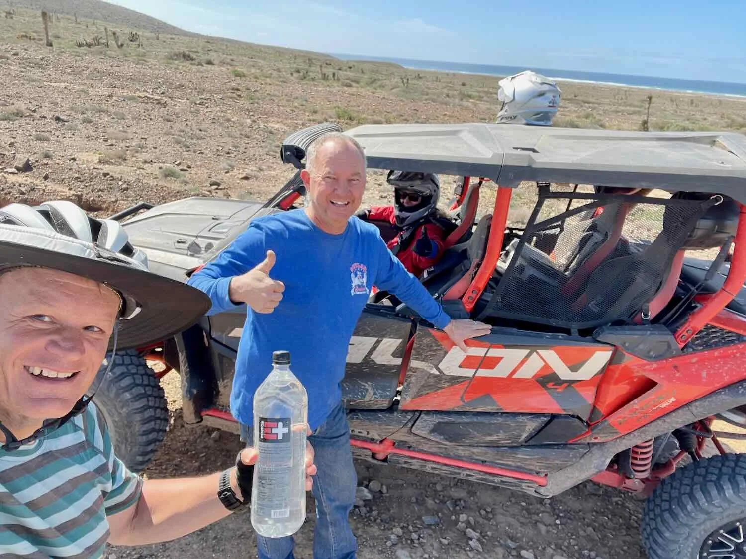 Trail angels Dean and Trish stopped to make sure we were okay, and gave us 3.5 liters of water. Bahía Blanco, Baja California, Mexico. Copyright © 2019-2023 Pedals and Puffins.