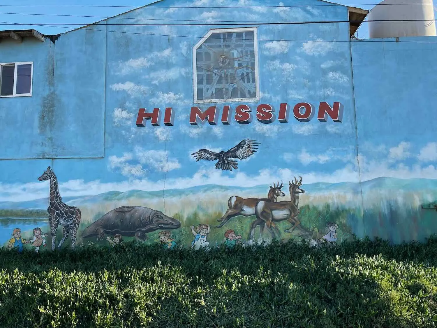 The hotel by the beach was located a little over a mile from the nearest town. But since we had plenty of time, we walked across the dunes to buy a few drinks and snacks from the local abarrotes store. Along the way we passed a mural painted with a fanciful scene. It depicted cartoon-like children playing among more lifelike wild creatures. Some of the animals were local, like pronghorn antelope, an eagle, and a wolf. But others were more outlandish, like a fat, prehistoric-looking lizard, a giraffe, and elephants. It was a fascinating piece of art.