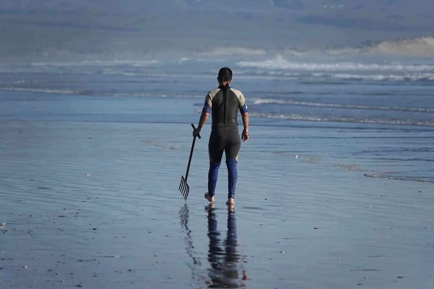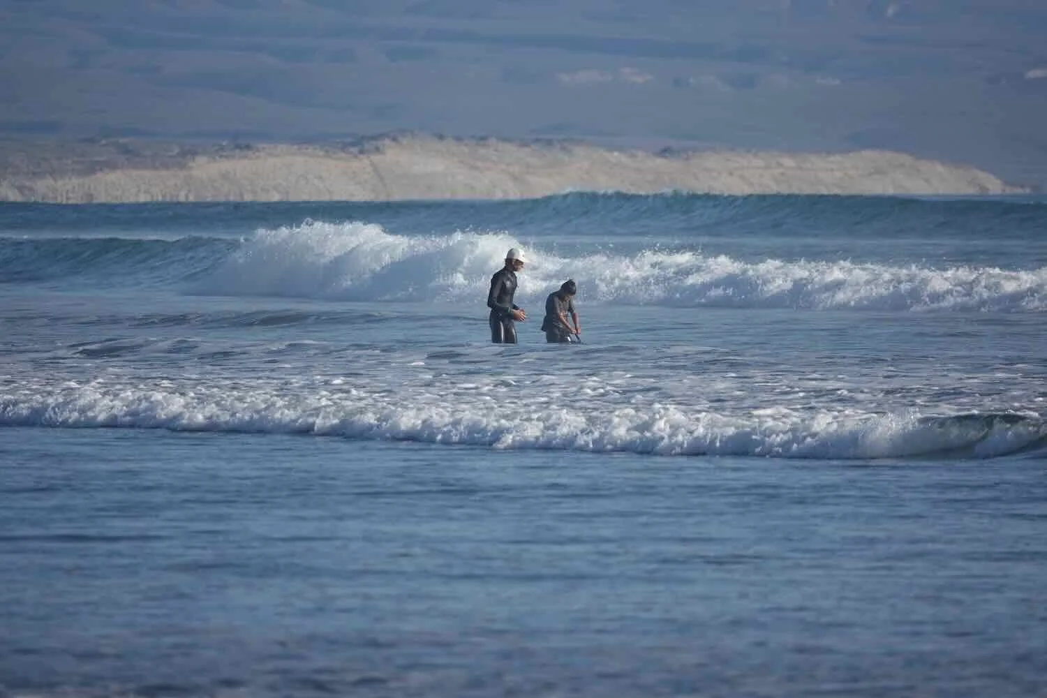 We weren’t the only folks out on the beach. There were hardly any other tourists. But out in the surf, locals were busy fishing and clamming.