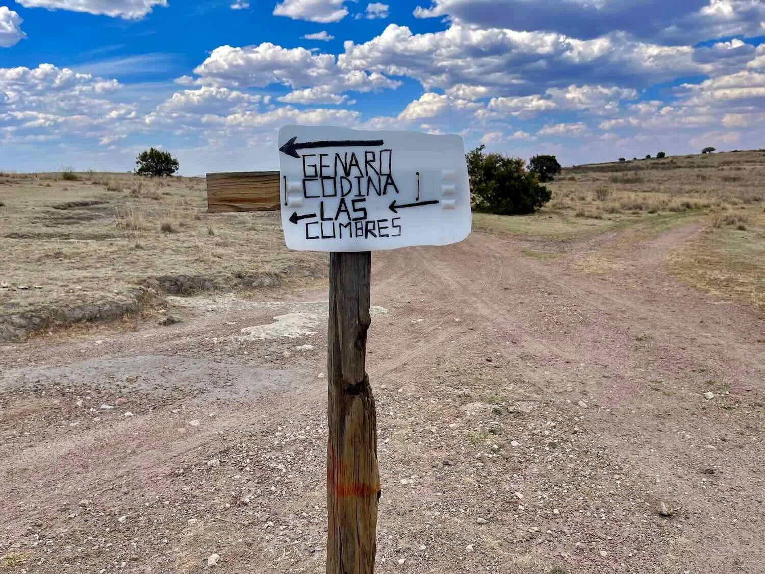 A makeshift road sign in the middle of nowhere. Every once in a while, these homemade signs will pop up at remote, backcountry intersections. South of Genaro Codina, State of Zacatecas, Mexico. Copyright © 2019-2023 Pedals and Puffins.