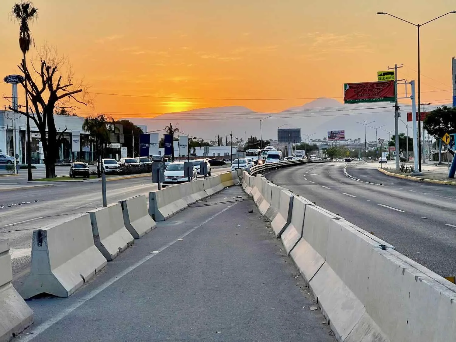 A construction zone swallowed up our bike path as we attempted to cycle out of the city, as the sun rose over the mountains ahead. León, State of Guanajuato, Mexico. Copyright © 2019-2023 Pedals and Puffins.