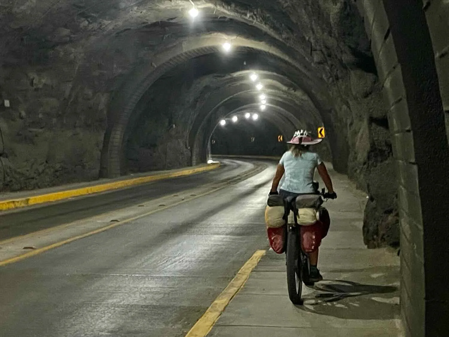 Cycling through one of Guanajuato’s famous, underground traffic tunnels. Blvd. Diego Rivera, City of Guanajuato, Mexico. Copyright © 2019-2023 Pedals and Puffins.
