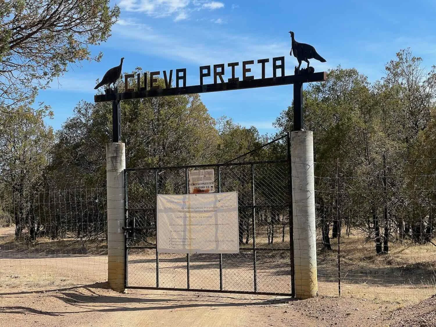 Silhouettes of turkeys decorate this ranch gate in the Sierra Fría mountains. The area is home to the some of the largest wild turkeys in North America. State of Aguascalientes, Mexico. Copyright © 2019-2023 Pedals and Puffins.