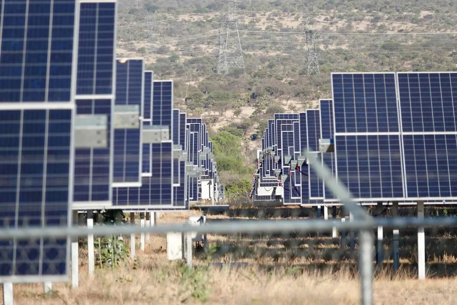 Rows and rows of solar panels covered the top of the ridge along our route. Parque Solar Los Cuervos, State of Aguascalientes, Mexico. Copyright © 2019-2023 Pedals and Puffins.