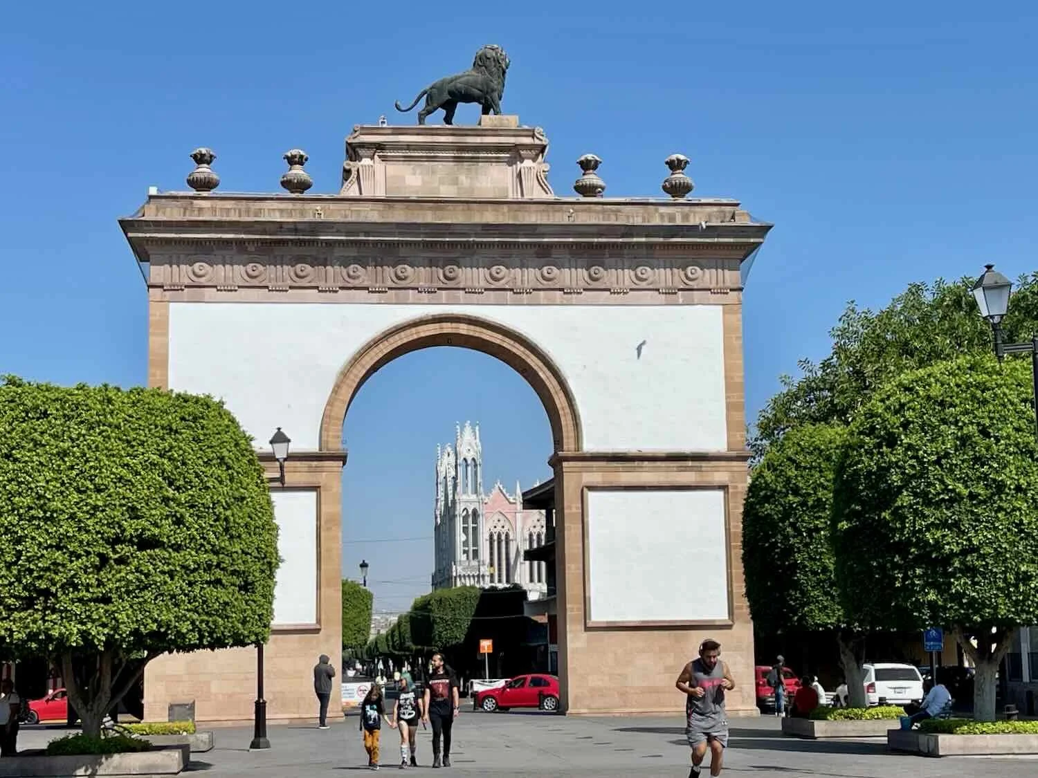 A stroll down the Avenue of the Héroes led us to León’s triumphal arch, erected to commemorate Mexico’s independence from Spain (seen here framing the Church of the Sacred Heart). The lion on top symbolizes the courage of the people of the city. León, State of Guanajuato, Mexico. Copyright © 2019-2023 Pedals and Puffins.