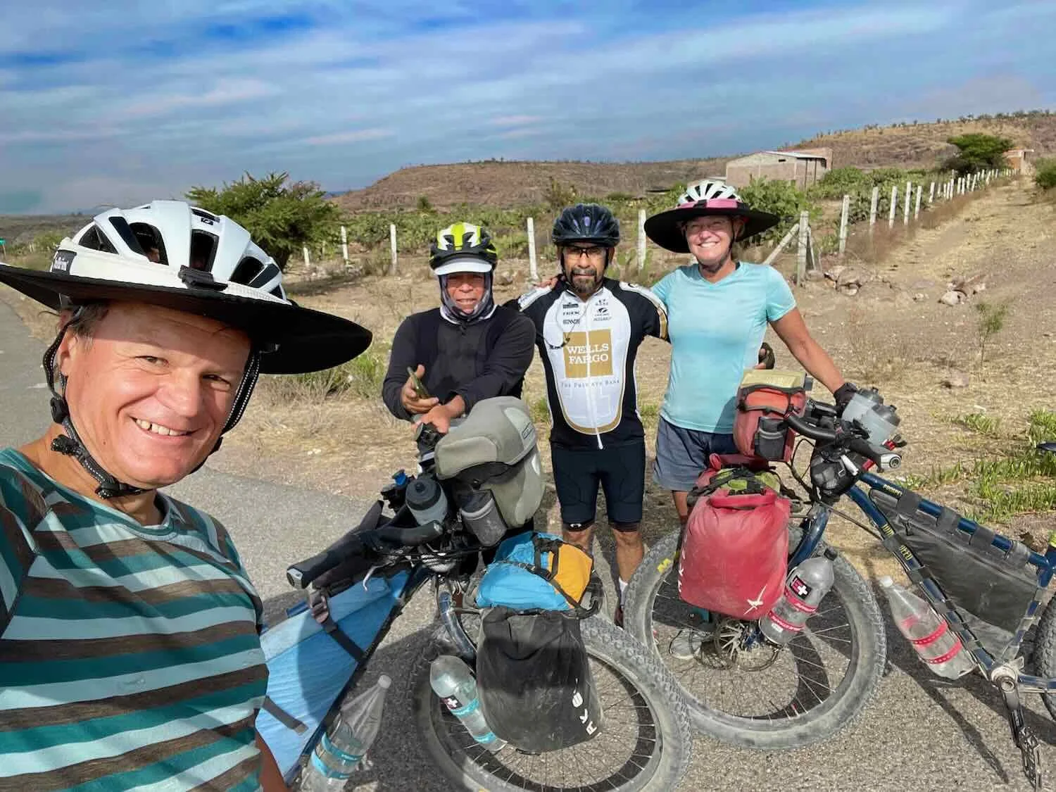When we reached an intersection and stopped to get our bearings, a Mexican cyclists hailed us and came over to talk. That’s how we met Román, a really warm and friendly cyclist from a nearby town. Around 20 years ago he had lived in the USA. But now his English was a bit rusty, and he was eager to practice talking with us. He also was fascinated by our trip.