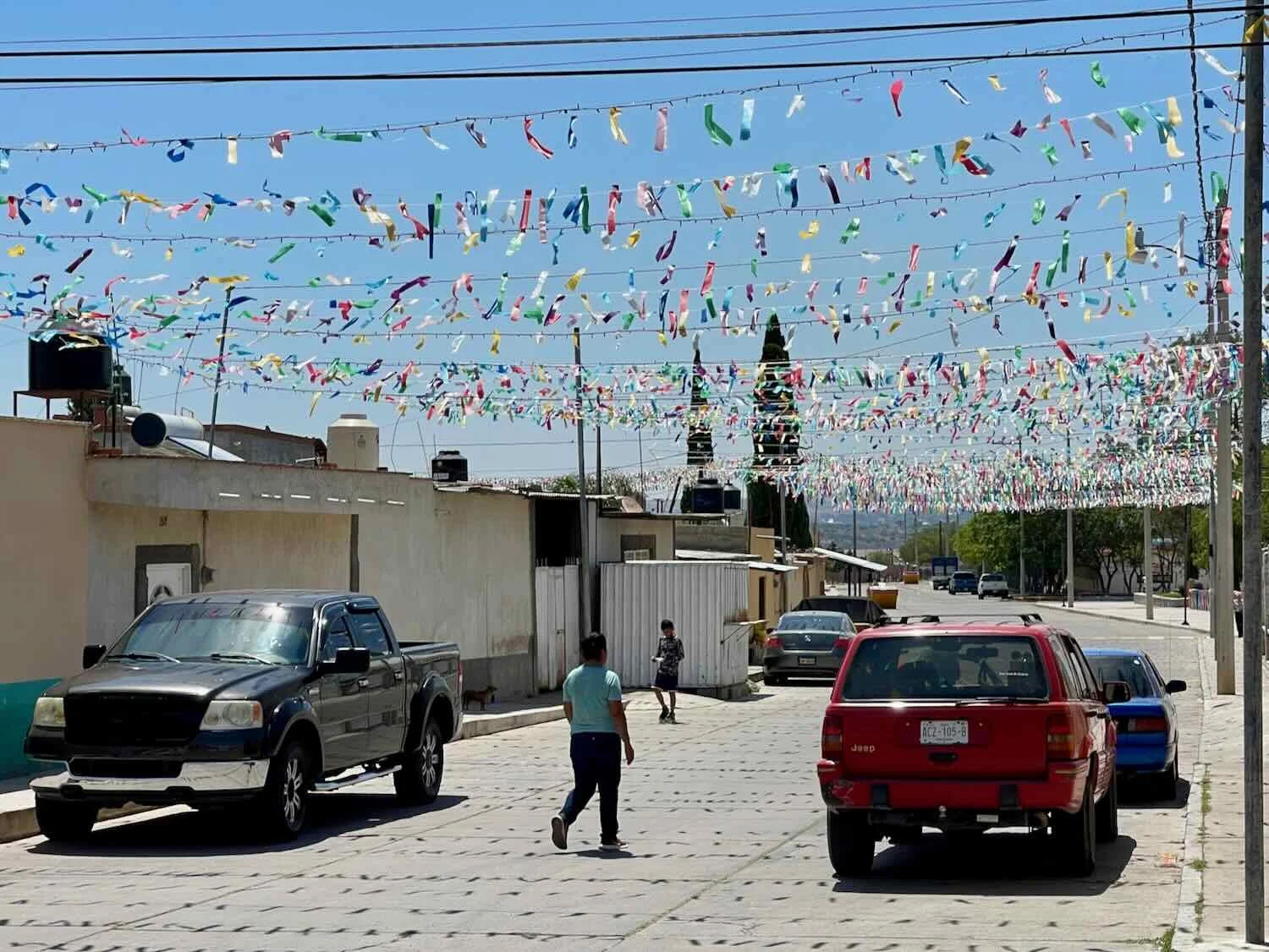 The festive town of San Antonio de los Ríos, where we stopped for supplies before ascending into the Sierra Fría mountains. State of Aguascalientes, Mexico. Copyright © 2019-2023 Pedals and Puffins.