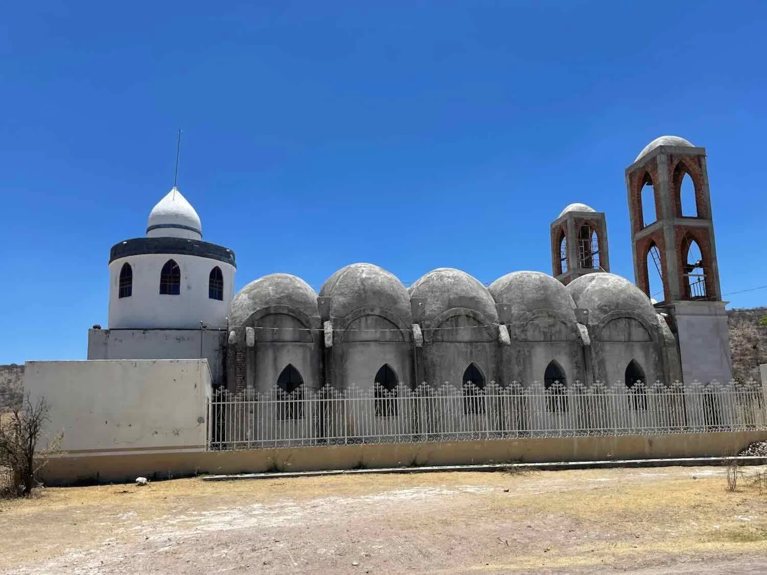 We passed this striking Catholic Church in the first town after leaving the Sierra Fría mountains. The construction of the main hall, with five pairs of concrete domes, was different than anything we’d ever seen before. Temazcal, State of Aguascalientes, Mexico. Copyright © 2019-2023 Pedals and Puffins.