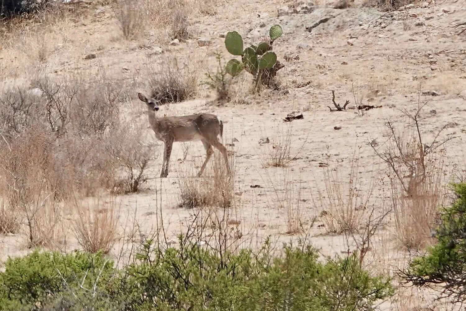 We saw this white-tailed-deer walking through a hillside woodland, high on the slopes of the Sierra Fría mountains. It was pretty exciting, being only our second deer sighting since entering Mexico nearly five months ago. We later learned that this is one of the smallest subspecies of white-tailed deer. Approaching Congoja, State of Aguascalientes, Mexico. Copyright © 2019-2023 Pedals and Puffins.
