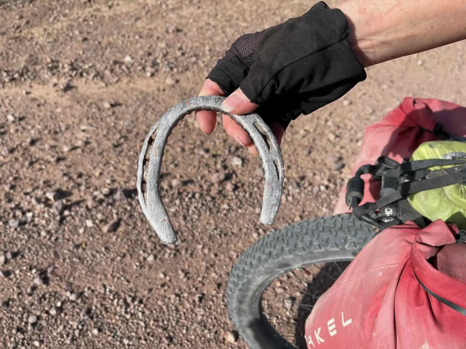 We found a horseshoe lying in the road, and considered carrying it for good luck. But it was very heavy, and neither one of us wanted to carry the extra weight. So we left it there for someone else to find. Sierra Fría mountains, State of Aguascalientes, Mexico. Copyright © 2019-2023 Pedals and Puffins.