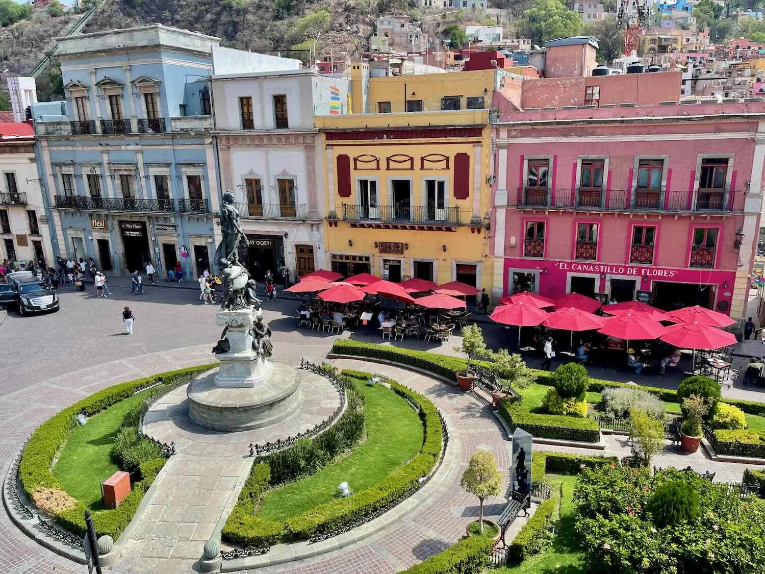 The view of the Plaza de la Paz from our hotel balcony. Roaming mariachi bands filled the plaza with music in the evenings, but things would quiet down at night. City of Guanajuato, Mexico. Copyright © 2019-2023 Pedals and Puffins.