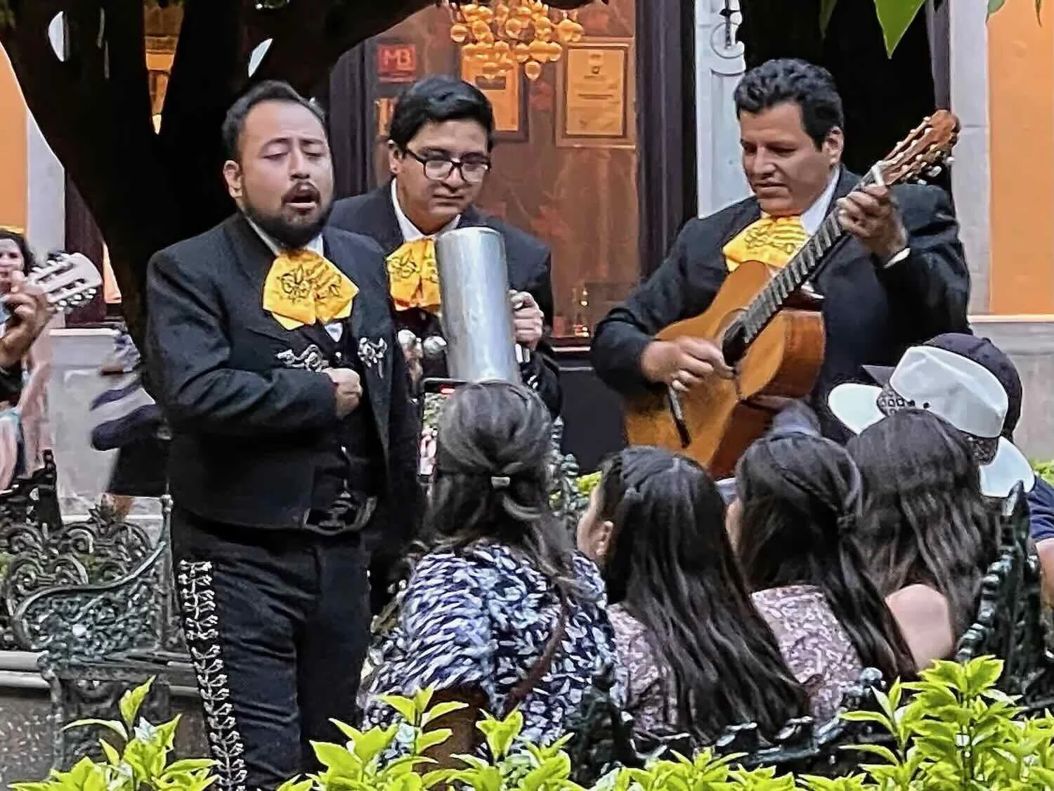 In the evening, the plaza in front of the Teatro Juárez is filled with the music of roaming mariachi bands. City of Guanajuato, Mexico. Copyright © 2019-2023 Pedals and Puffins.