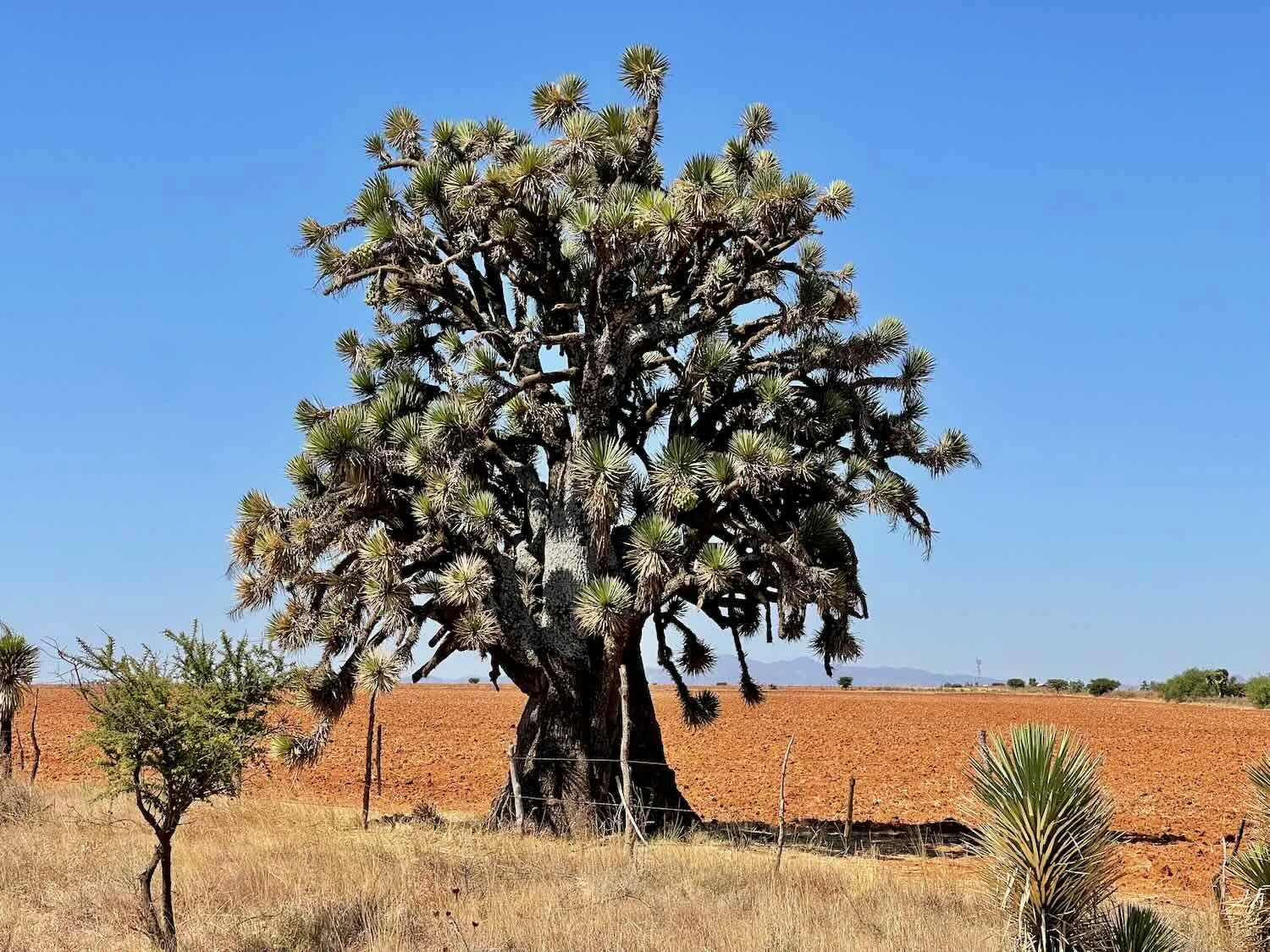 Once in a while you see a spectacular, old yucca tree that - from a distance - you might confuse with a big shade tree. This was one of the most impressive palm yucca trees we saw along our route. Trancosito, State of Zacatecas, Mexico. Copyright © 2019-2023 Pedals and Puffins.