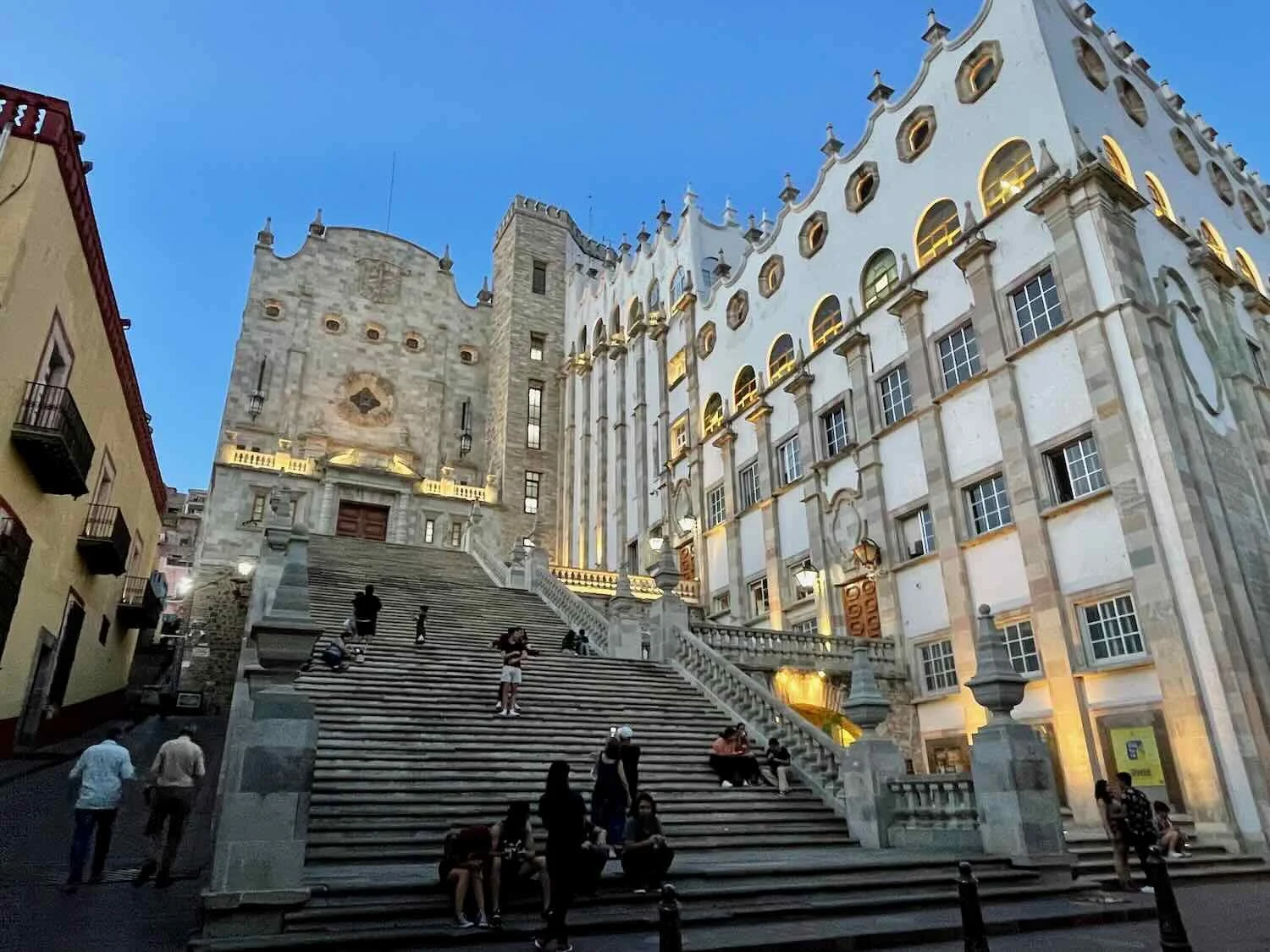 A monumental staircase leads to the hallowed halls of the University of Guanajuato. The 15,000 students from the university bring a youthful sophistication to the town. City of Guanajuato, Mexico. Copyright © 2019-2023 Pedals and Puffins.