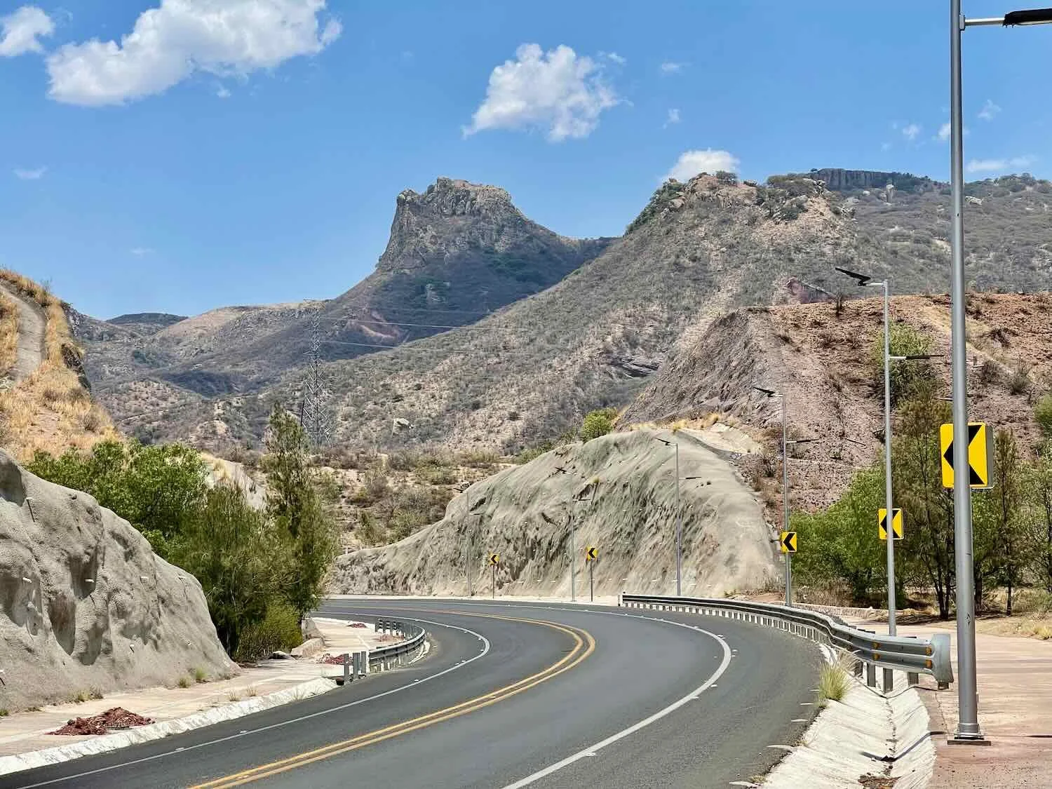 Descending out of the rugged hills. Approaching La Camada, State of Aguascalientes, Mexico. Copyright © 2019-2023 Pedals and Puffins.