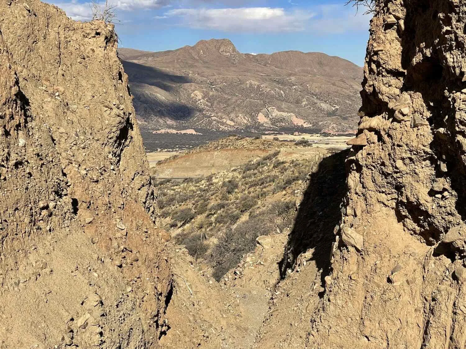 Approaching the town of Atocha through a gap in the rugged mountains. Atocha, Cordillera de Chicas, Potosí Department, Bolivia. Copyright © 2019-2025 Pedals and Puffins.