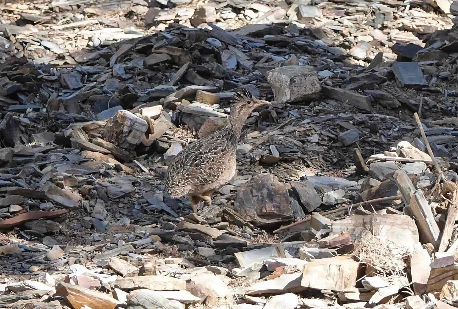 Can you see the bird in this photo? We spotted this cryptically-colored Tinamou at the edge of an agricultural field. Like their cousins the ostriches, rheas and kiwis, they have very short tail feathers (looking almost tailless). Yuruma, Potosí Department, Bolivia. Copyright © 2019-2025 Pedals and Puffins.