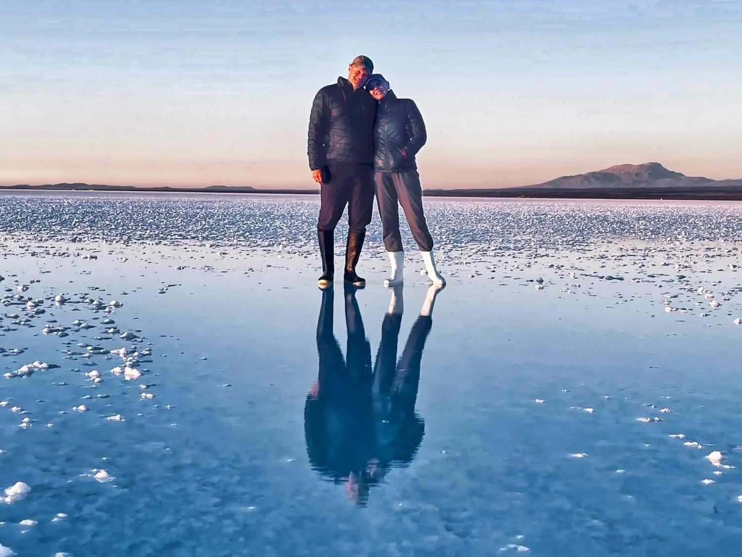 enjoyed the sunset over a part of the salt flat that was covered with a thin sheen of water, creating mirror-like reflections in the shallow lake.