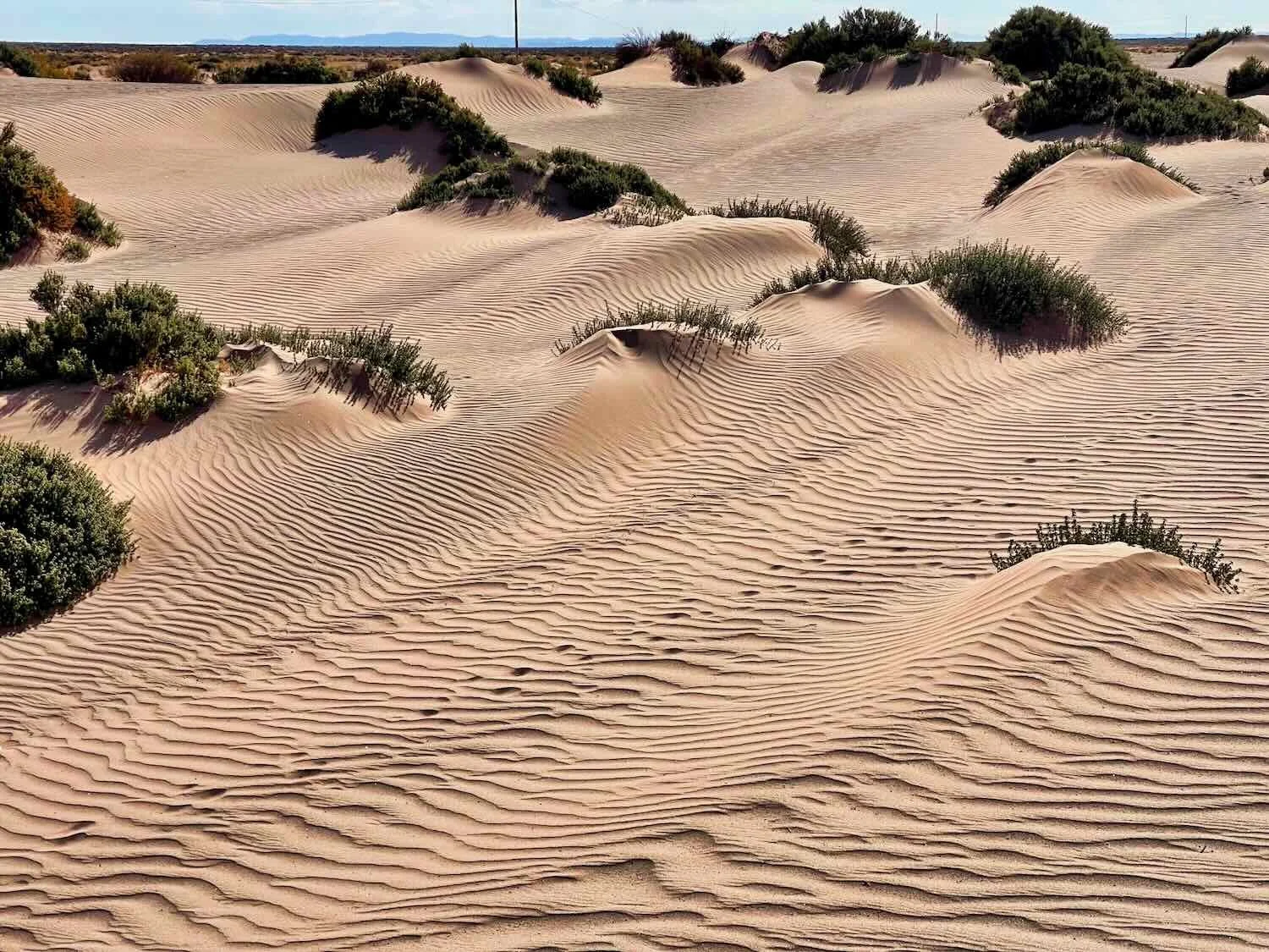 Happily, the morning dawned clear and calm. However, everything inside our tent was dusted with a layer of sand, like powdered sugar on a donut. We had tried to pitch the tent low enough to keep the wind out, but clearly it wasn’t sufficient and sand had blown in somehow. We ended up spending a bunch of time sweeping out the sand before taking down the tent.