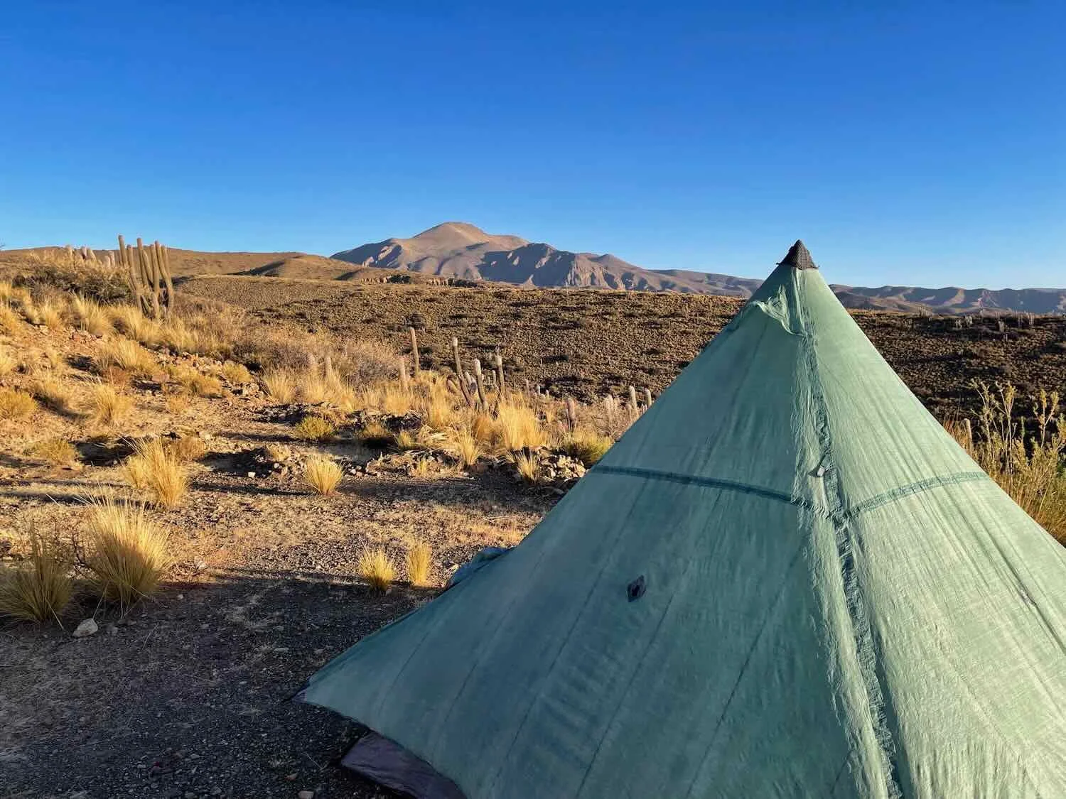 Fortunately, all the extra tie downs held secure, so the tent didn’t rattle and sway nearly as much as it had on our first night in the Cordillera de Chicas. We felt well protected. Eventually the wind died down, and a soothing calm settled over the plateau. After that, it stayed quiet for the rest of the night.