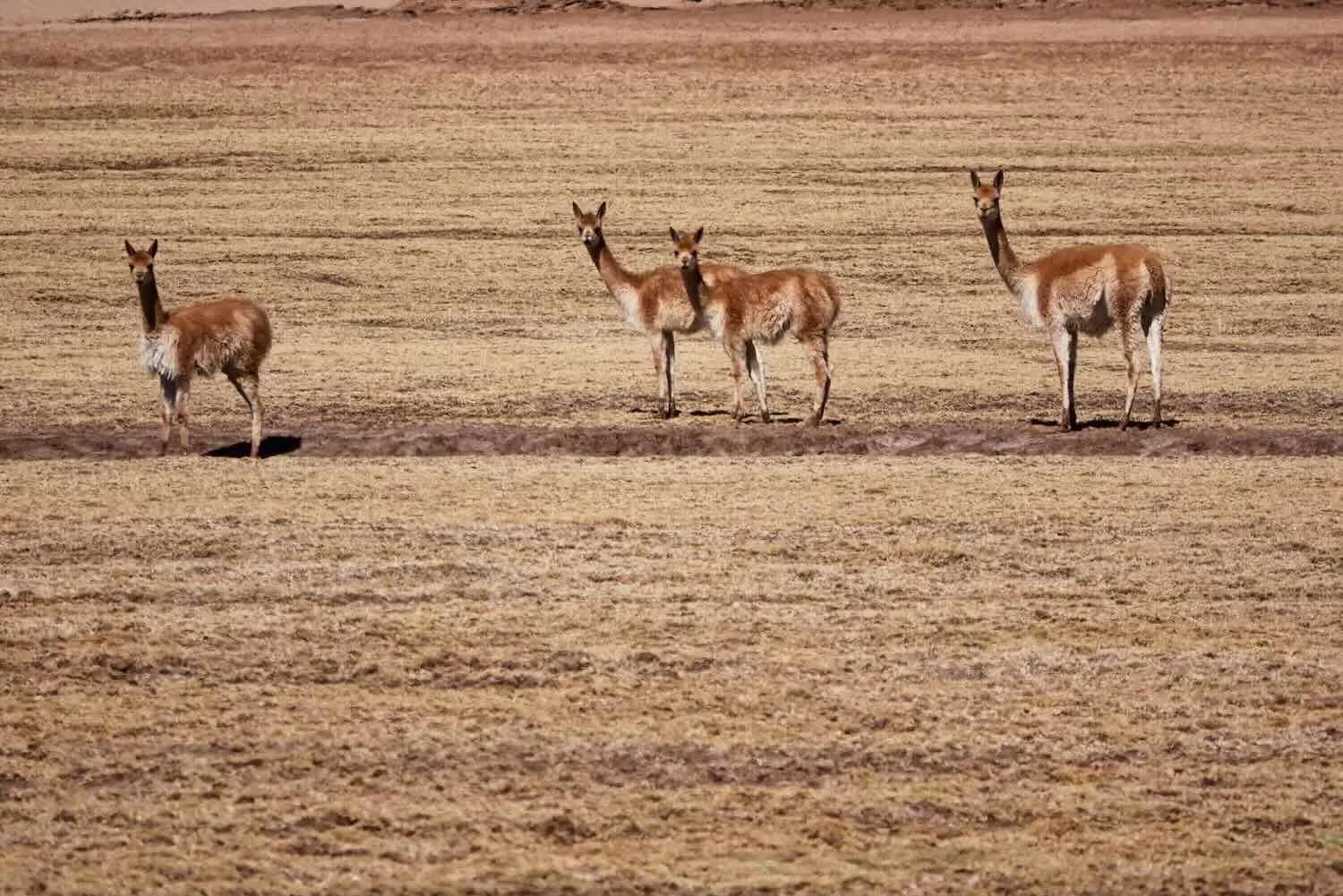 On the barren mud flats south of Uyuni we saw more, large herds of wild vicuñas than anywhere else on our journey so far. S of Uyuni, Potosí Department, Bolivia. Copyright © 2019-2025 Pedals and Puffins.