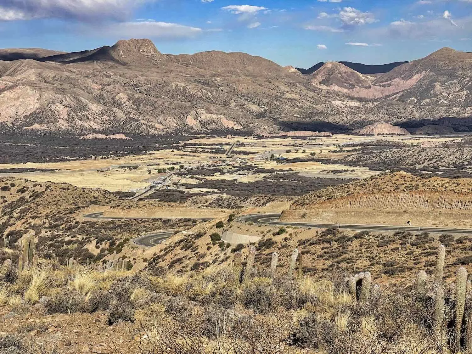 Looking back into the Salo River valley from our ascent into the Cordillera de Chicas. You can see the road we had climbed winding rapidly up the escarpment from the valley below. N of Salo, Potosí Department, Bolivia. Copyright © 2019-2025 Pedals and Puffins.