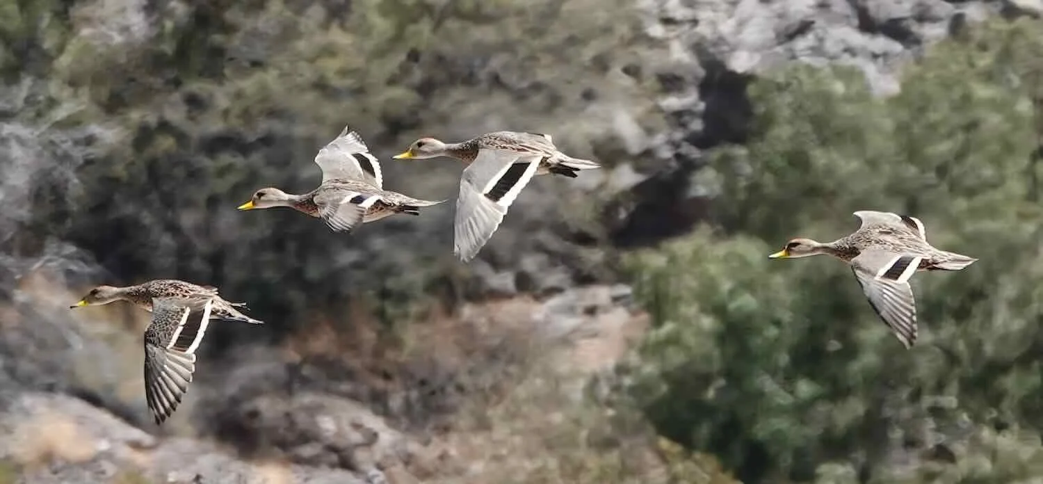A flock of Yellow-billed Pintails was attracted to the river. San Juan del Oro Canyon, Potosí Department, Bolivia. Copyright © 2019-2025 Pedals and Puffins.
