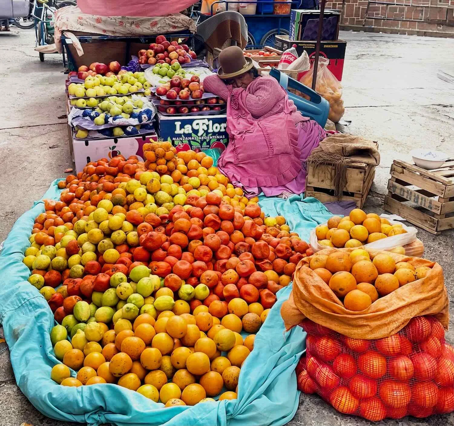 A tired, fruit vendor rested while waiting for customers at the municipal farmers’ market. Villazón, Potosí Department, Bolivia. Copyright © 2019-2025 Pedals and Puffins.